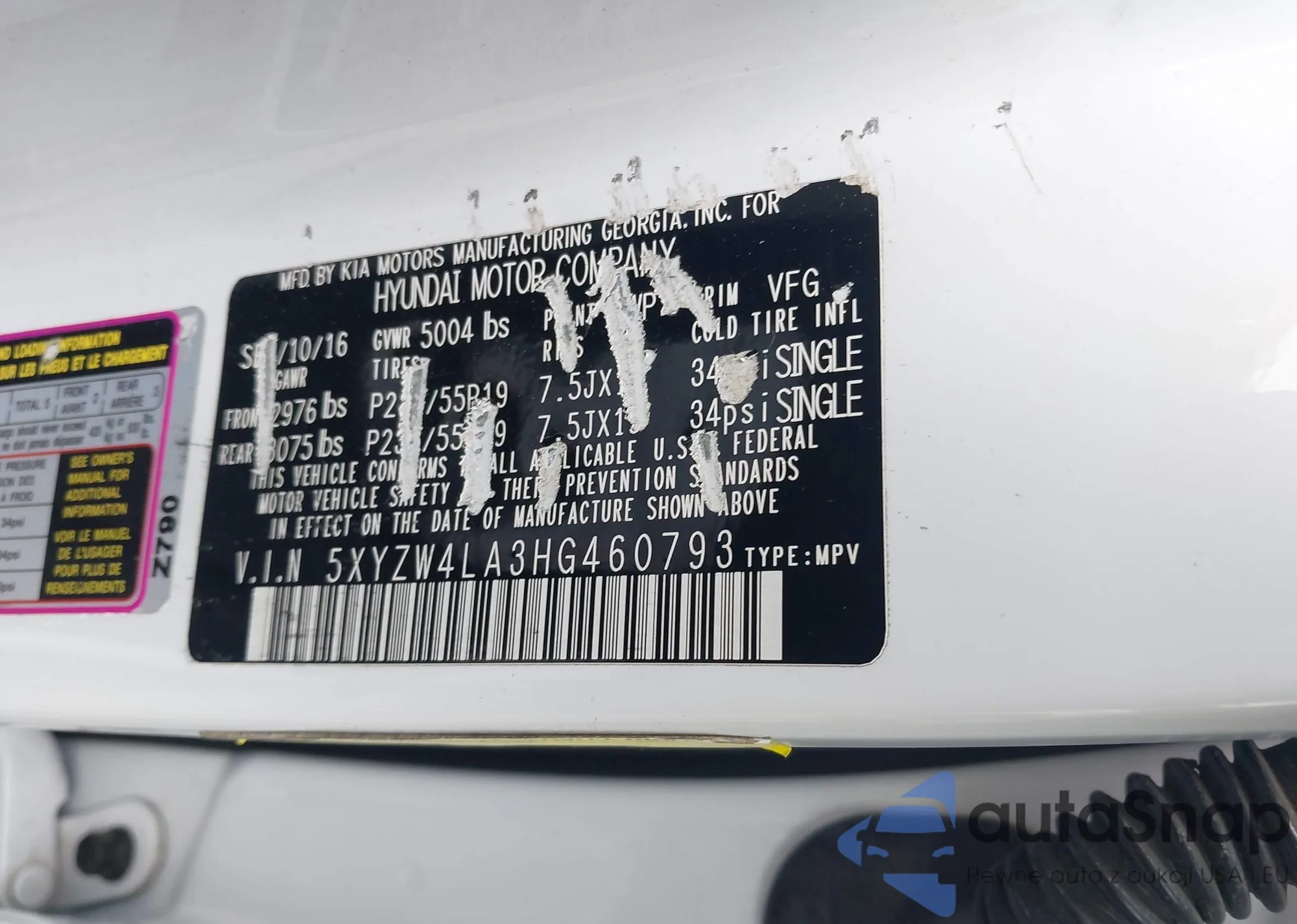 • VIN 5XYZW4LA3HG460793