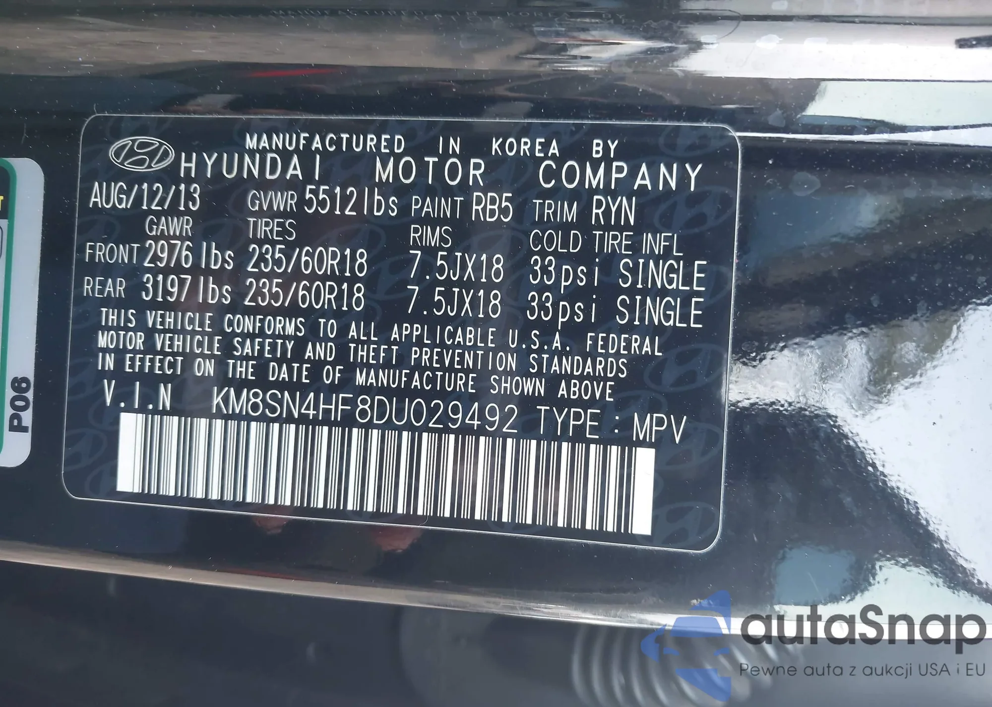 • VIN KM8SN4HF8DU029492
