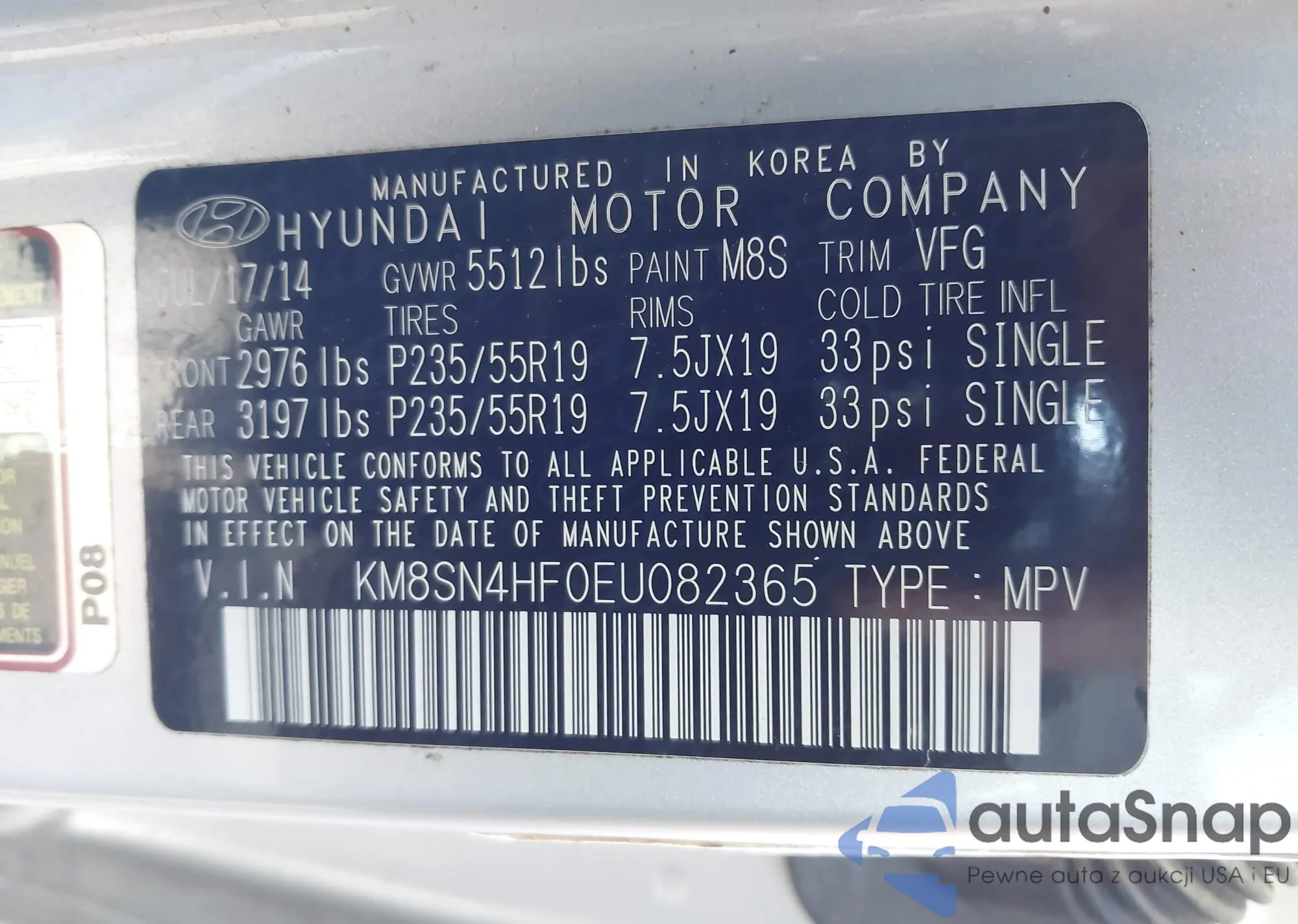 • VIN KM8SN4HF0EU082365