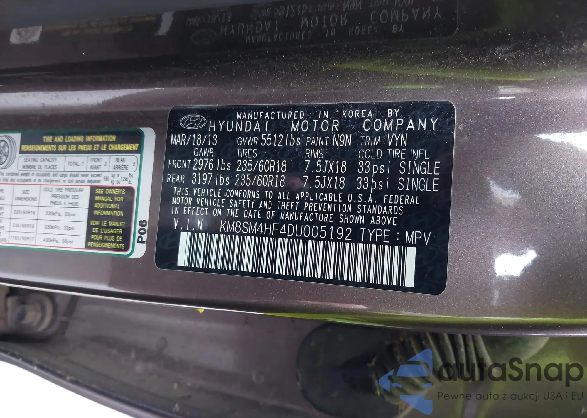 • VIN KM8SM4HF4DU005192