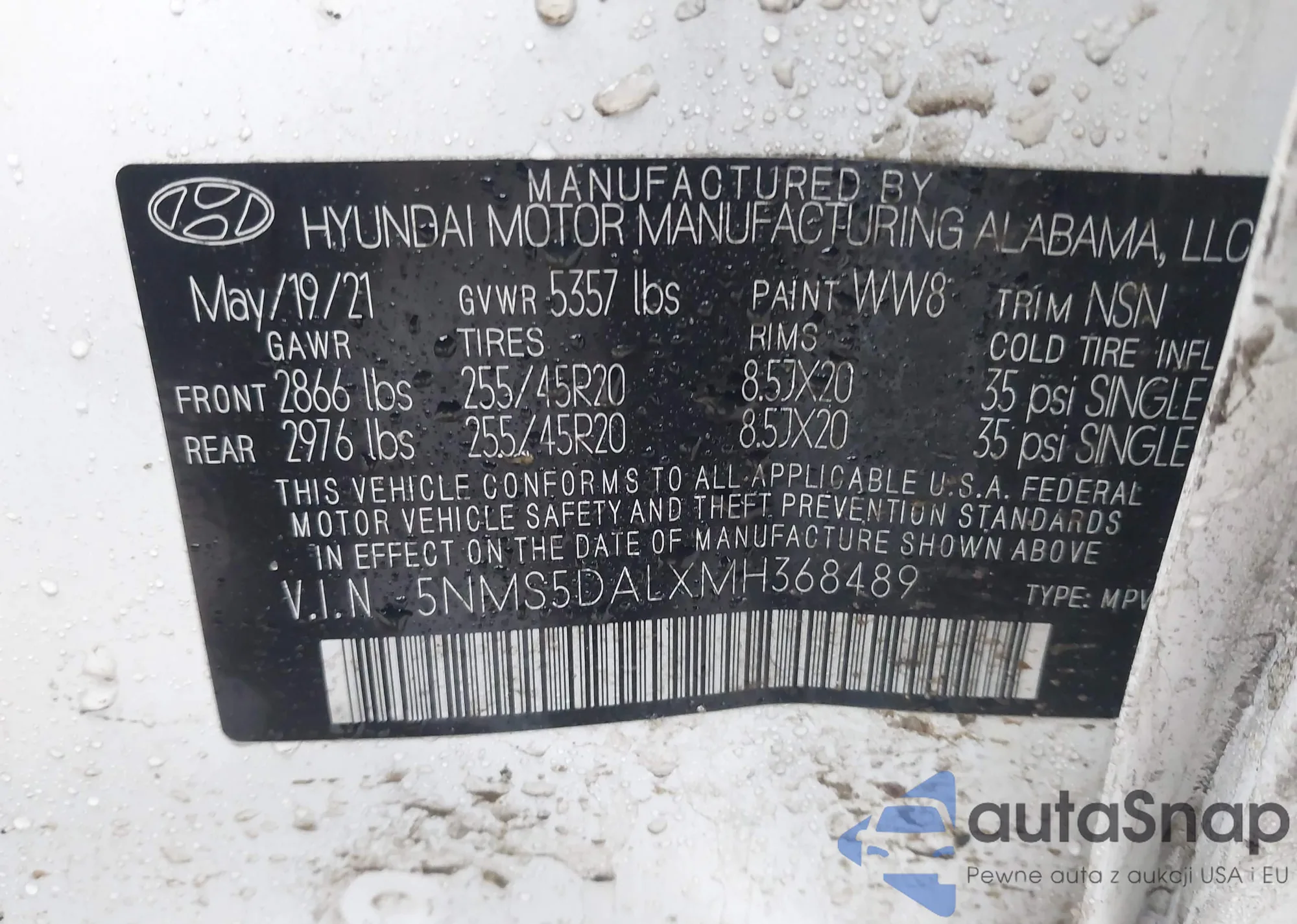 • VIN 5NMS5DALXMH368489