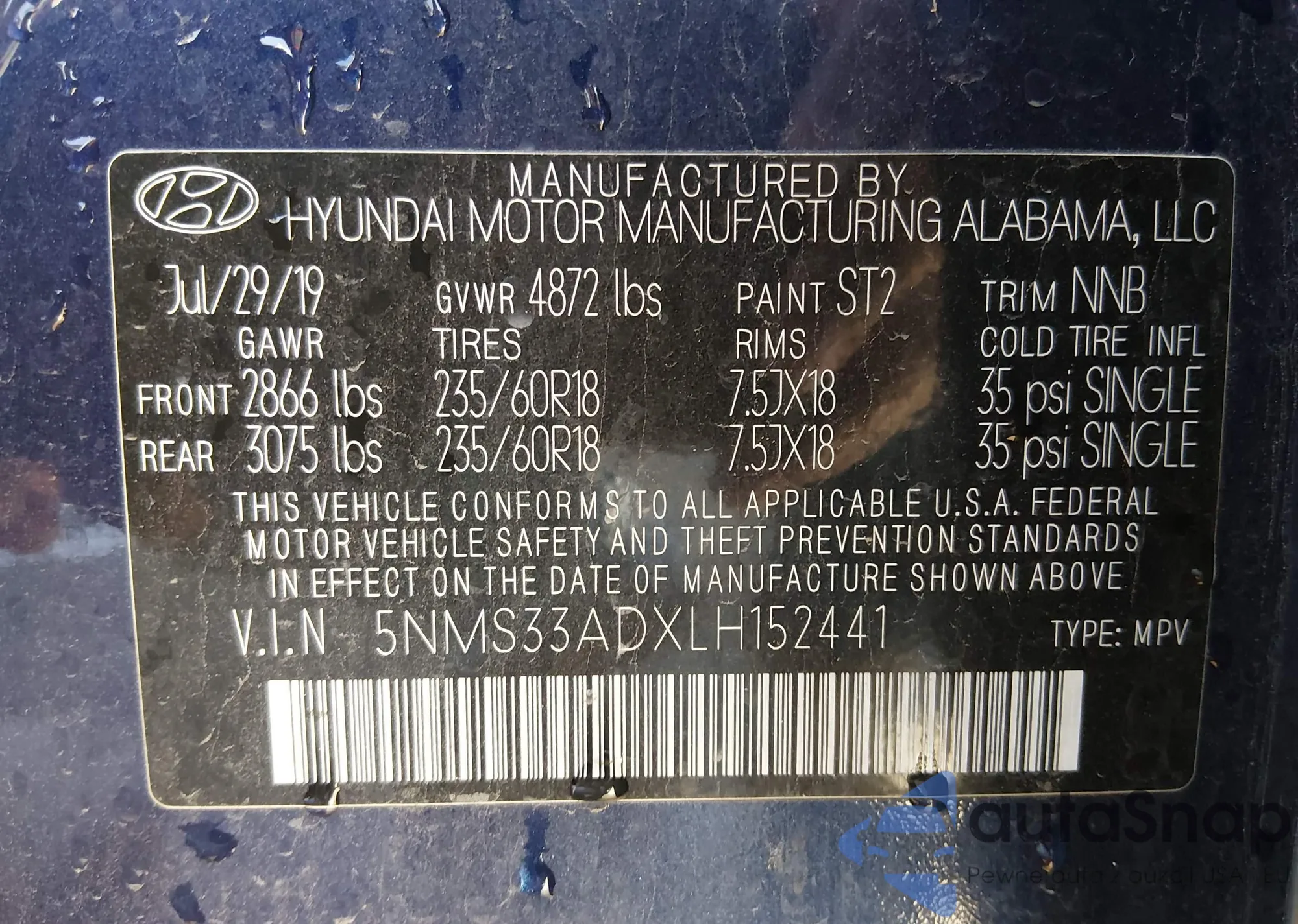 • VIN 5NMS33ADXLH152441