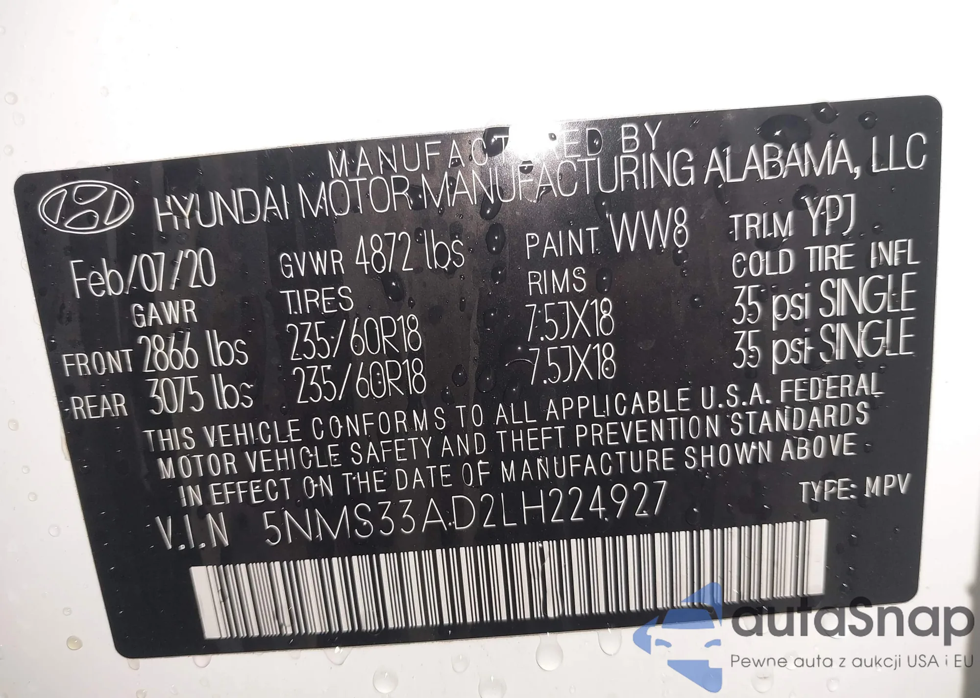 • VIN 5NMS33AD2LH224927