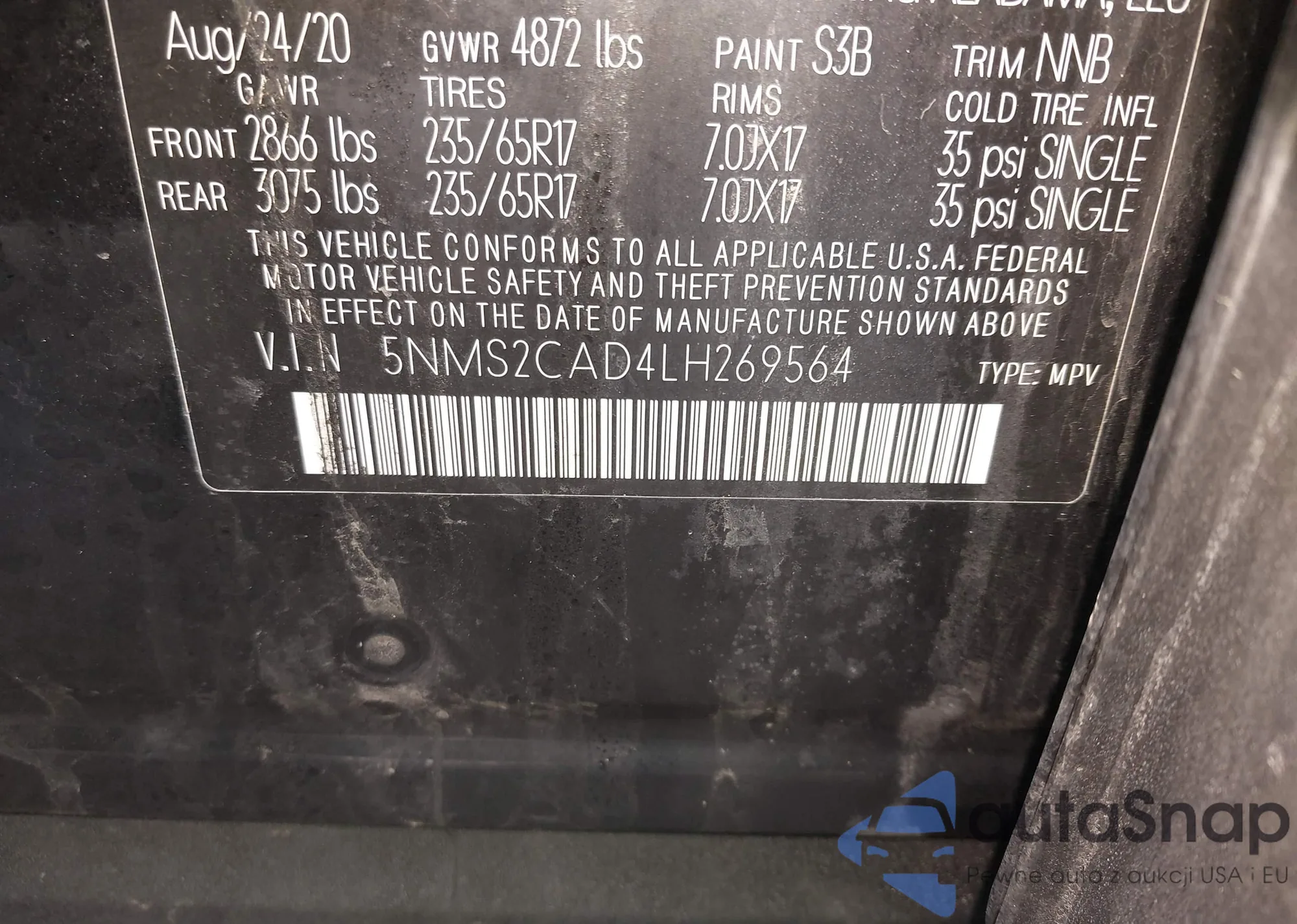 • VIN 5NMS2CAD4LH269564