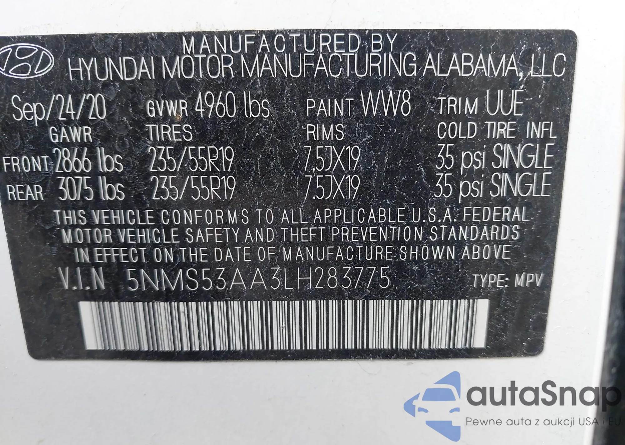 • VIN 5NMS53AA3LH283775