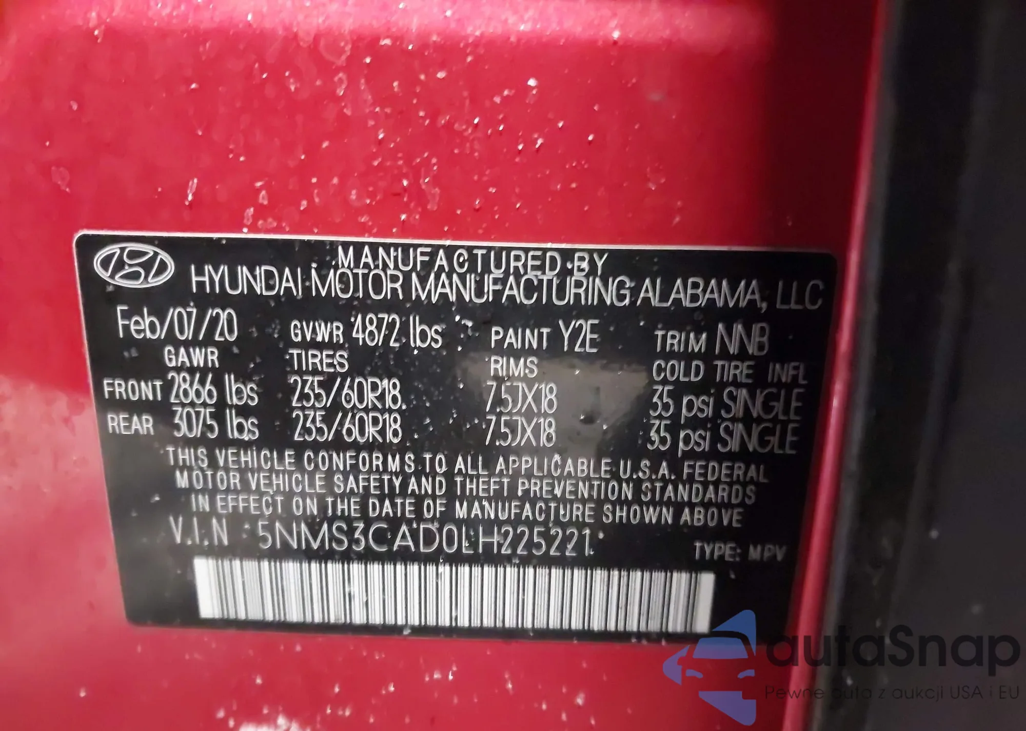 • VIN 5NMS3CAD0LH225221