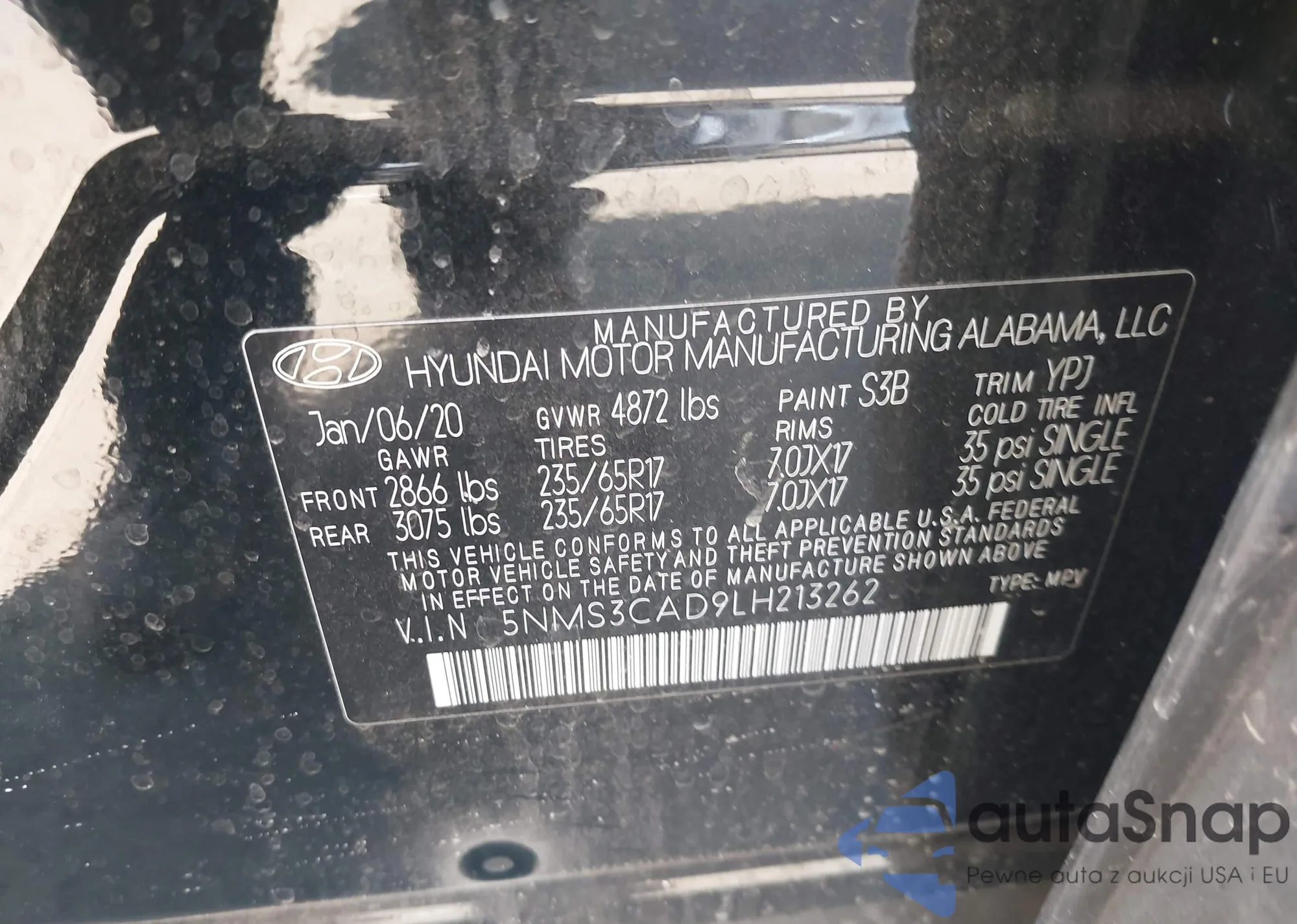 • VIN 5NMS3CAD9LH213262