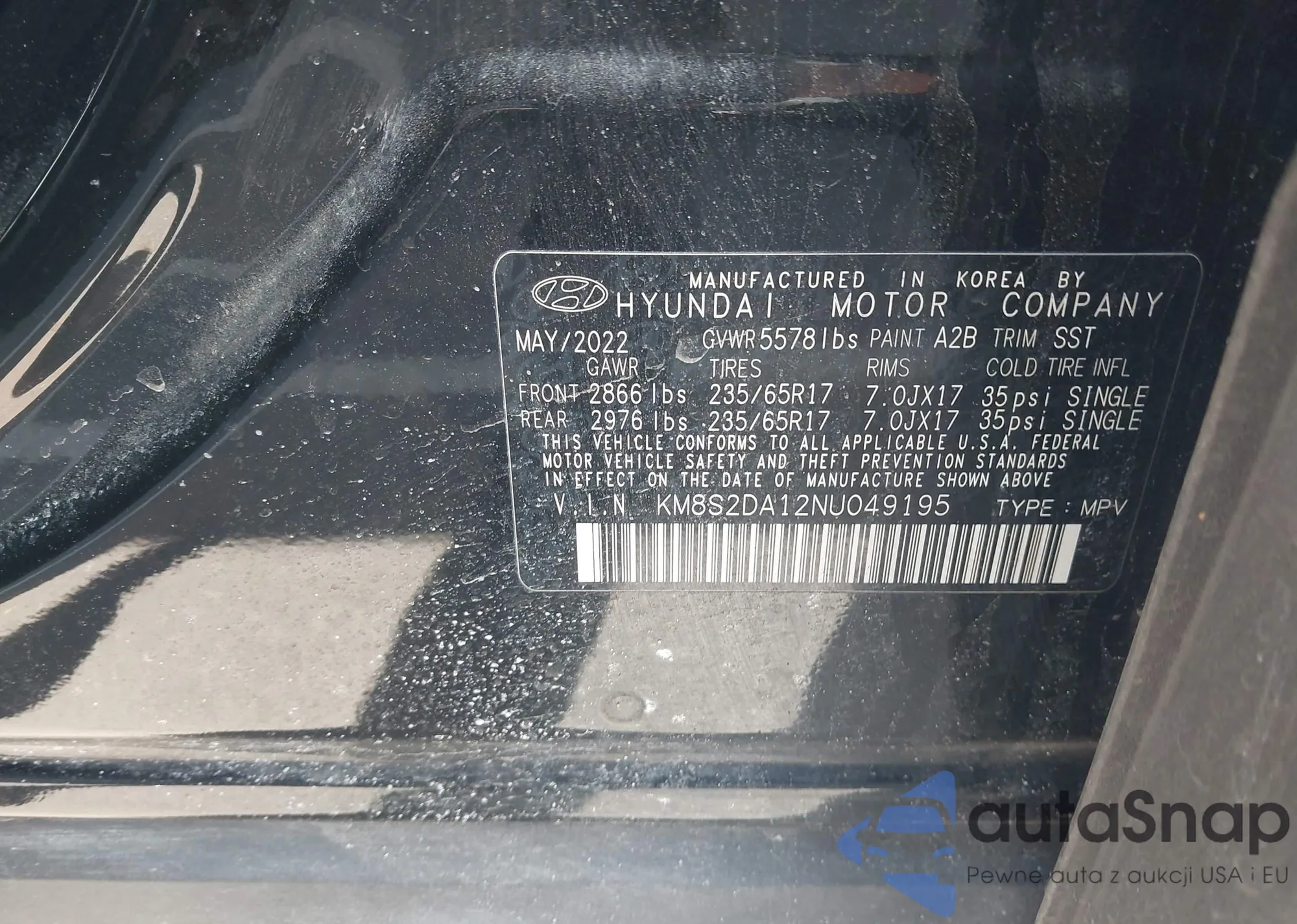 • VIN KM8S2DA12NU049195