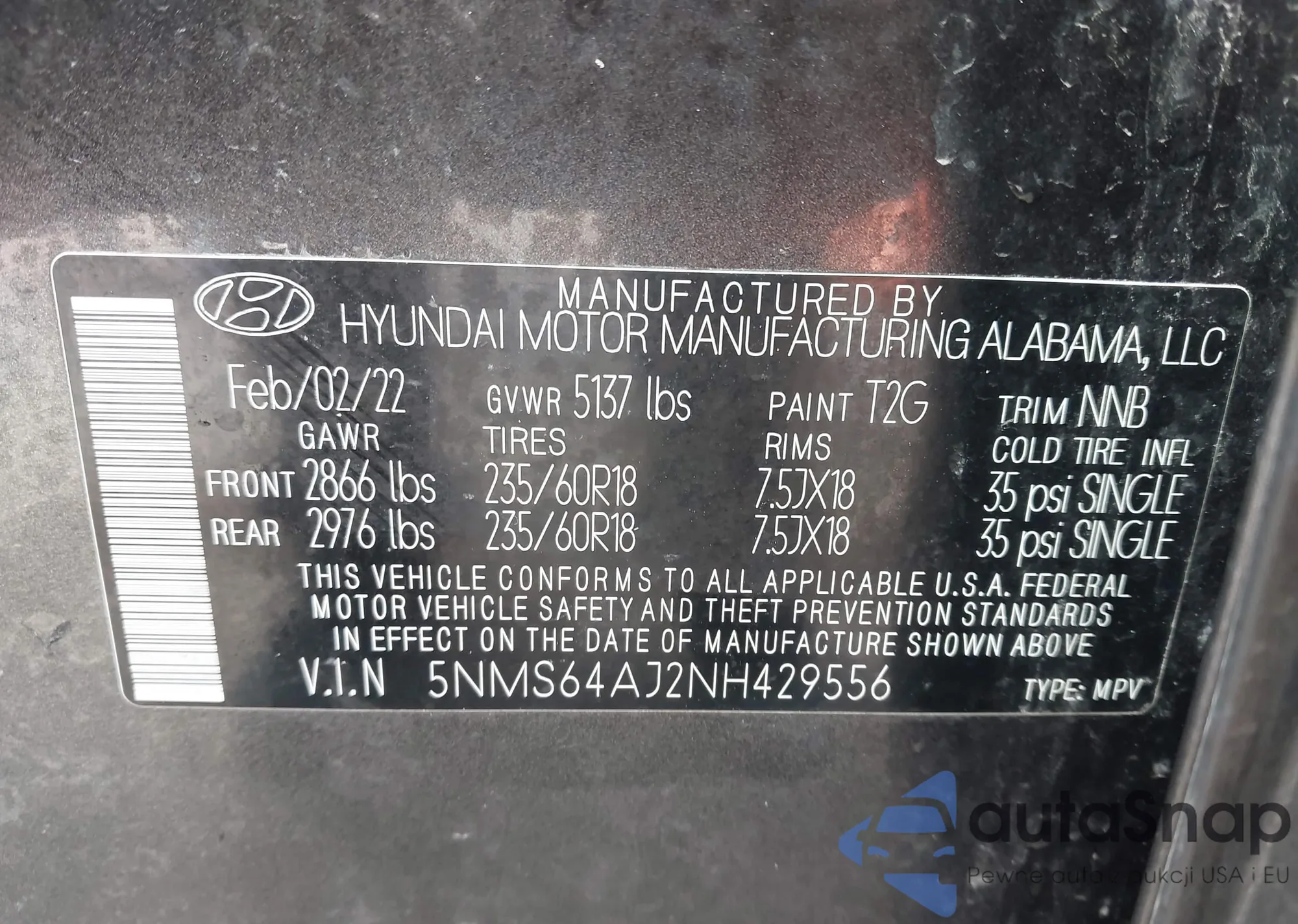 • VIN 5NMS64AJ2NH429556