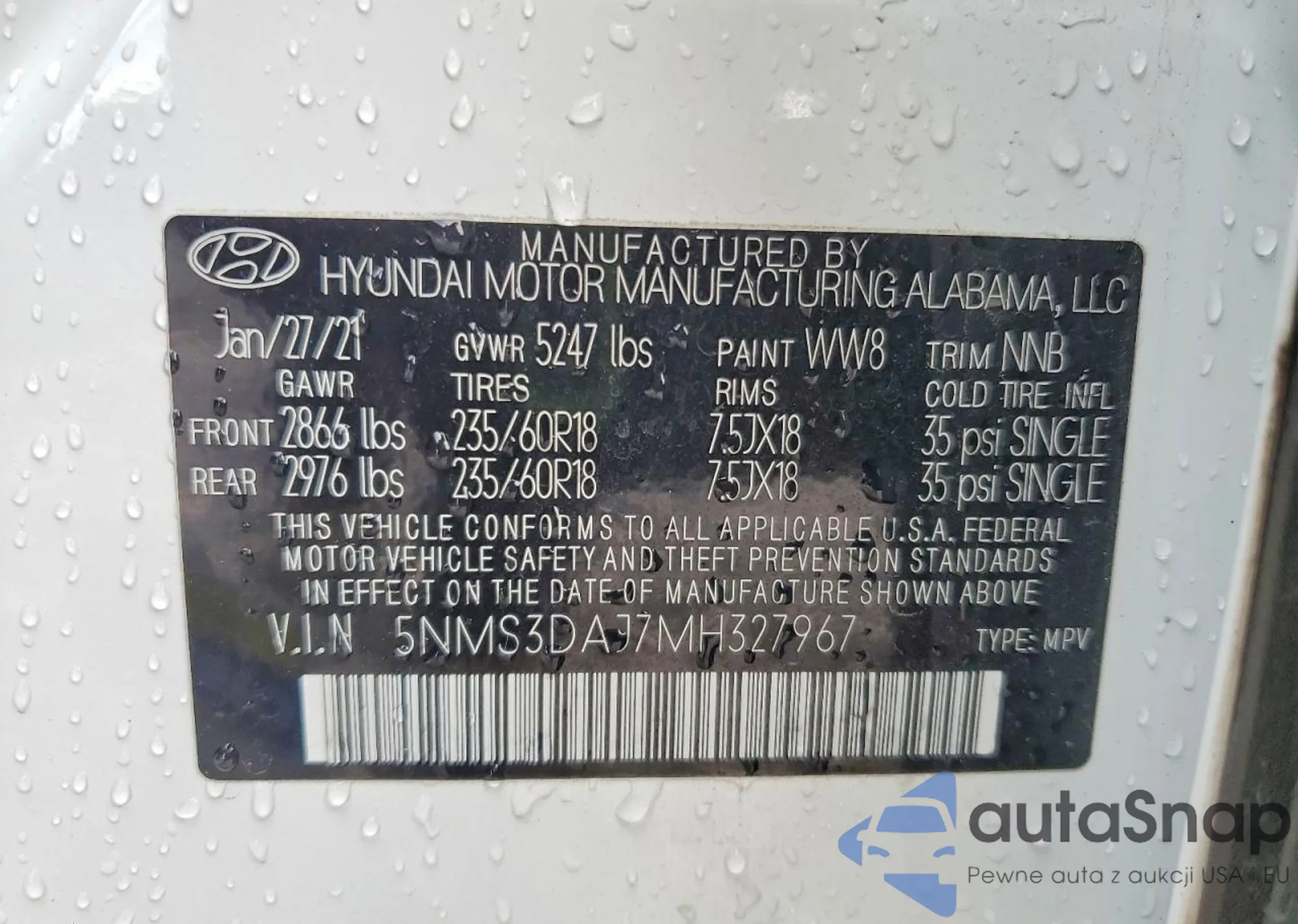• VIN 5NMS3DAJ7MH327967
