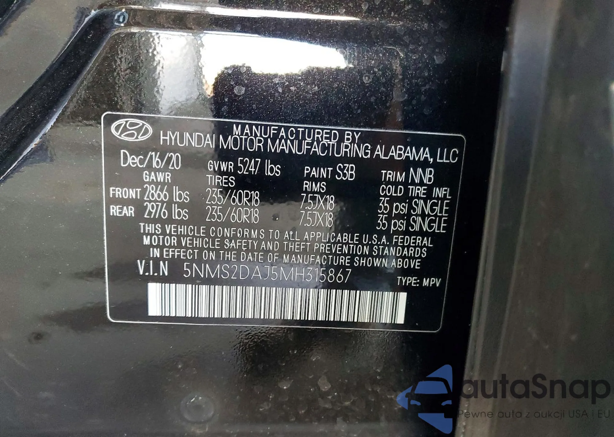 • VIN 5NMS2DAJ5MH315867