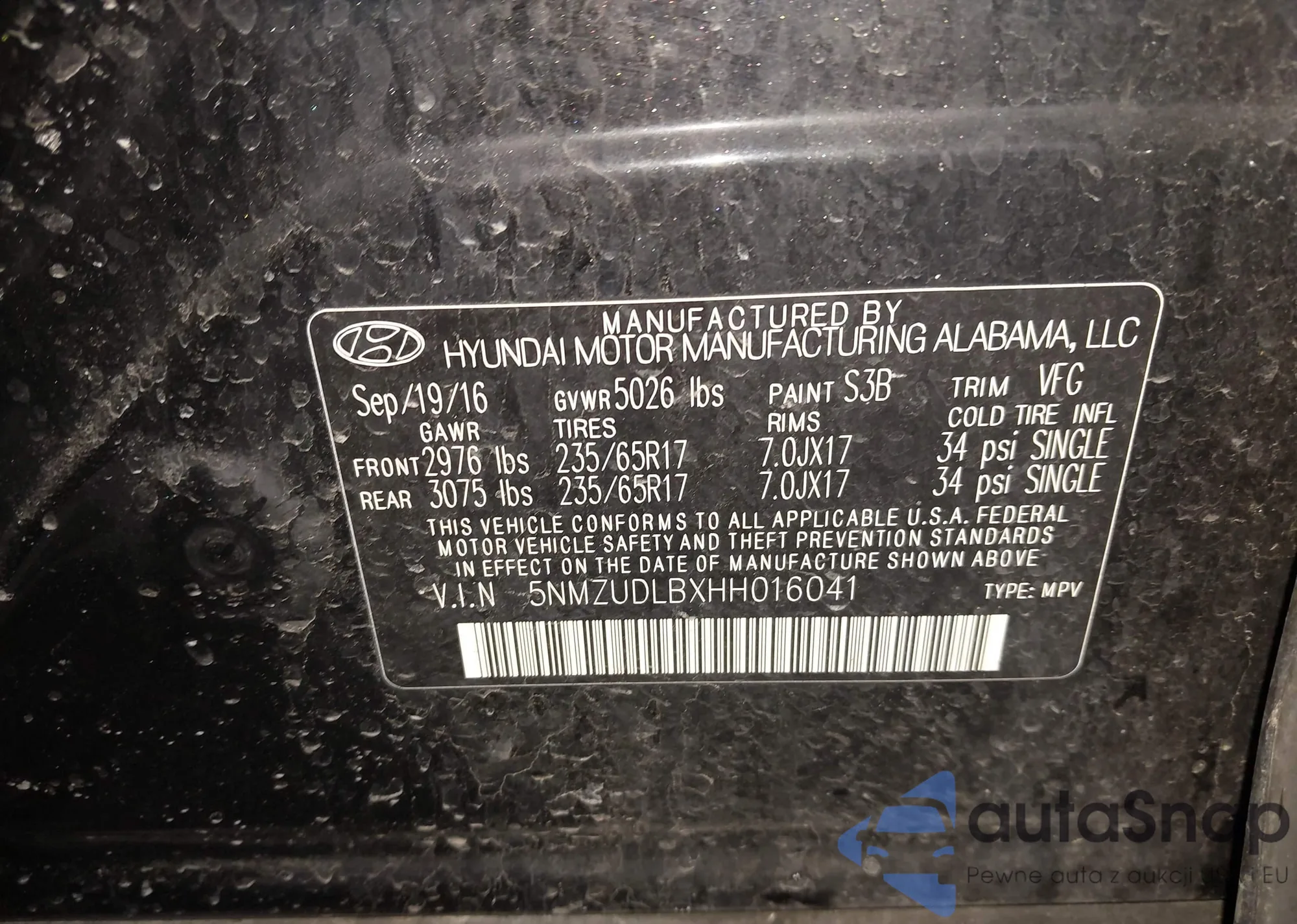 • VIN 5NMZUDLBXHH016041