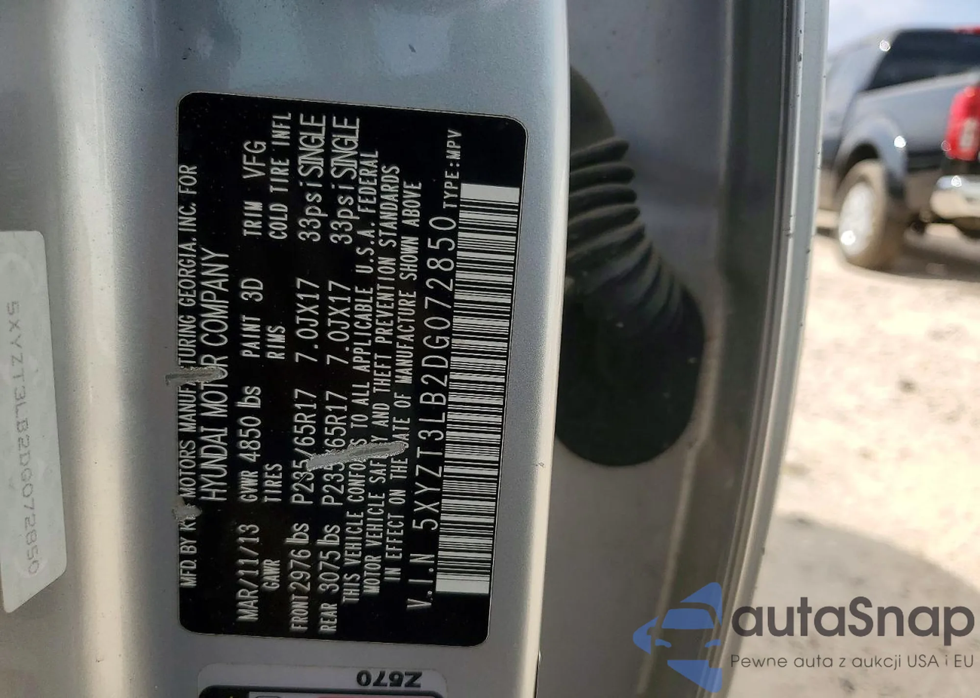 • VIN 5XYZT3LB2DG072850
