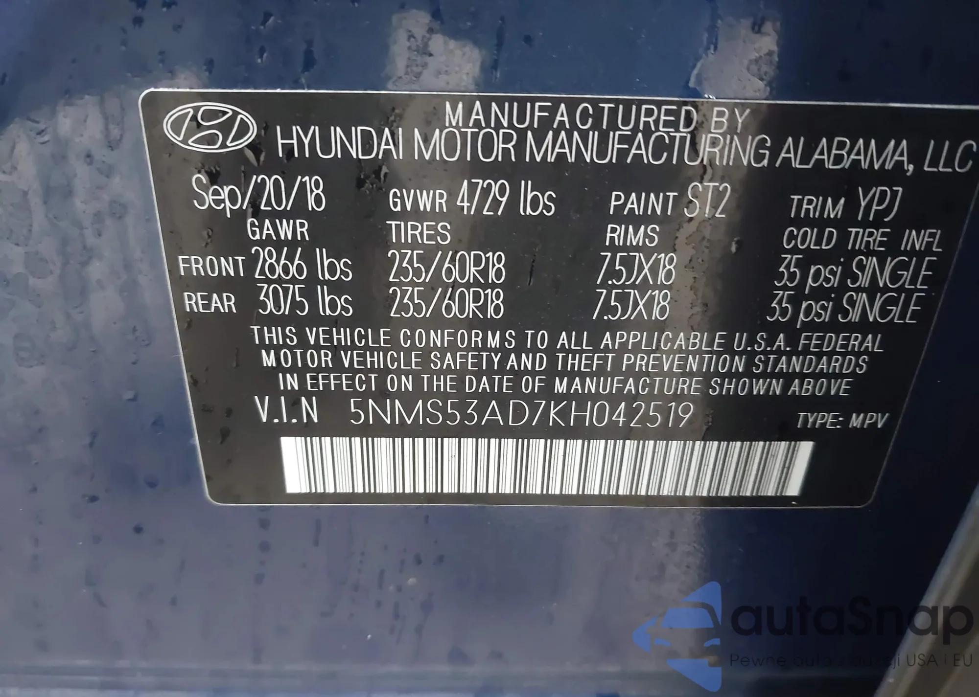 • VIN 5NMS53AD7KH042519