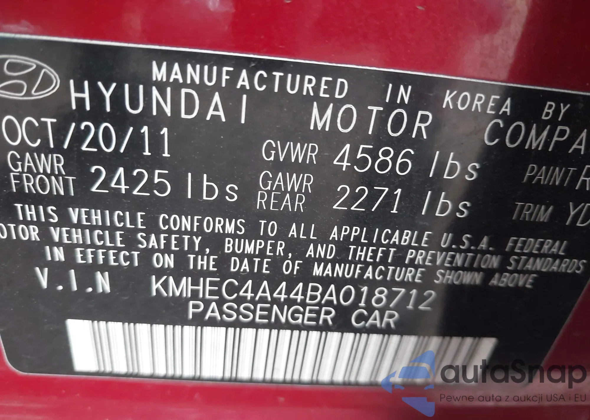 • VIN KMHEC4A44BA018712