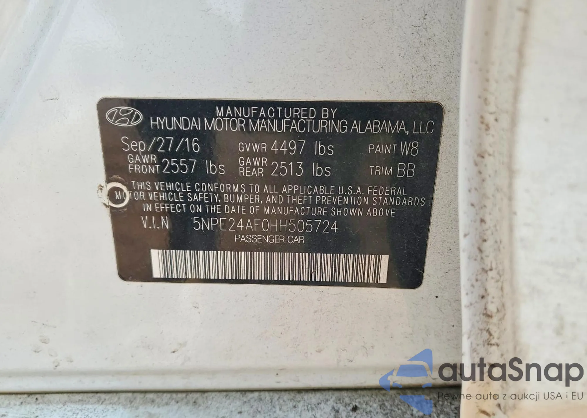• VIN 5NPE24AF0HH505724