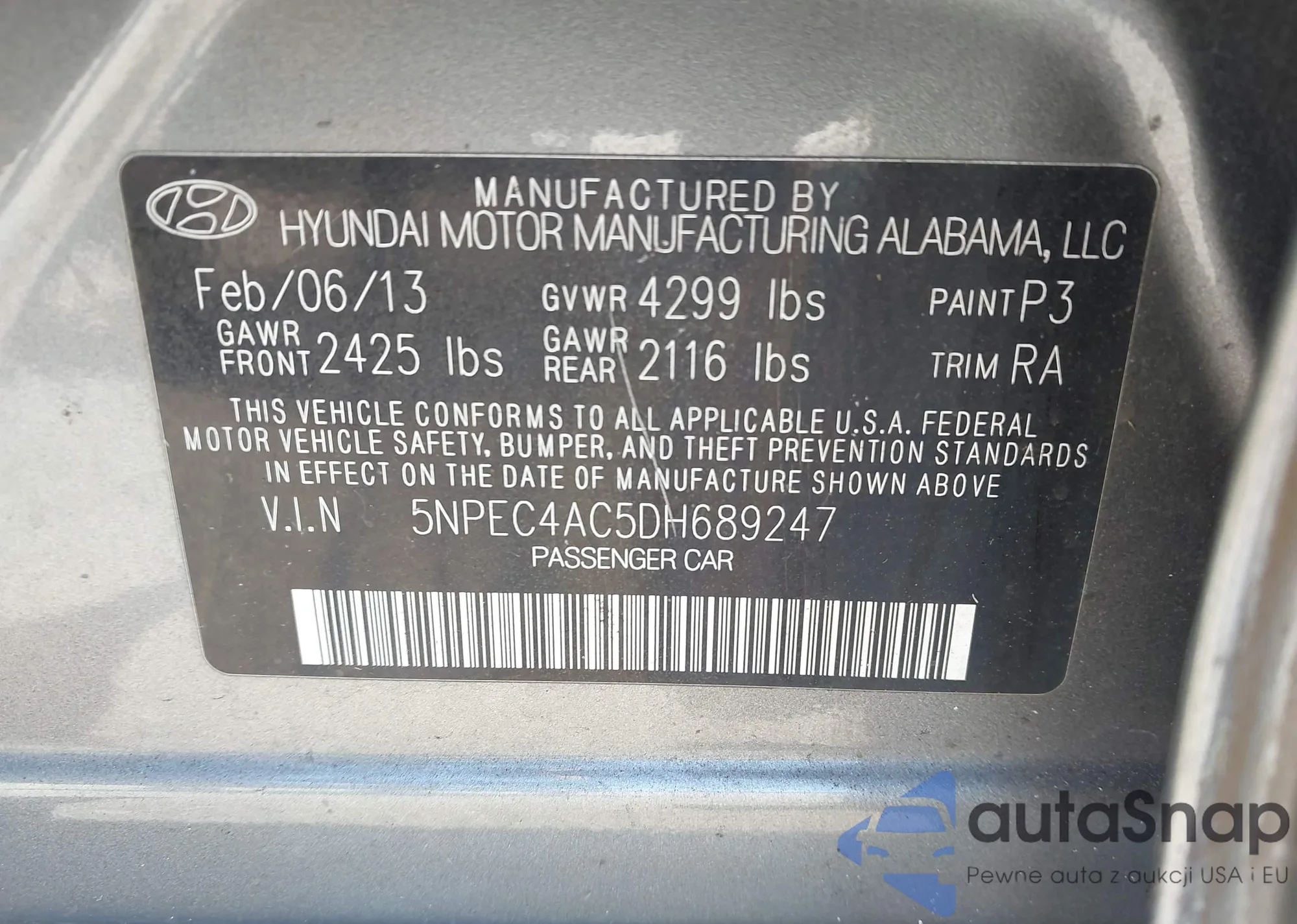 • VIN 5NPEC4AC5DH689247