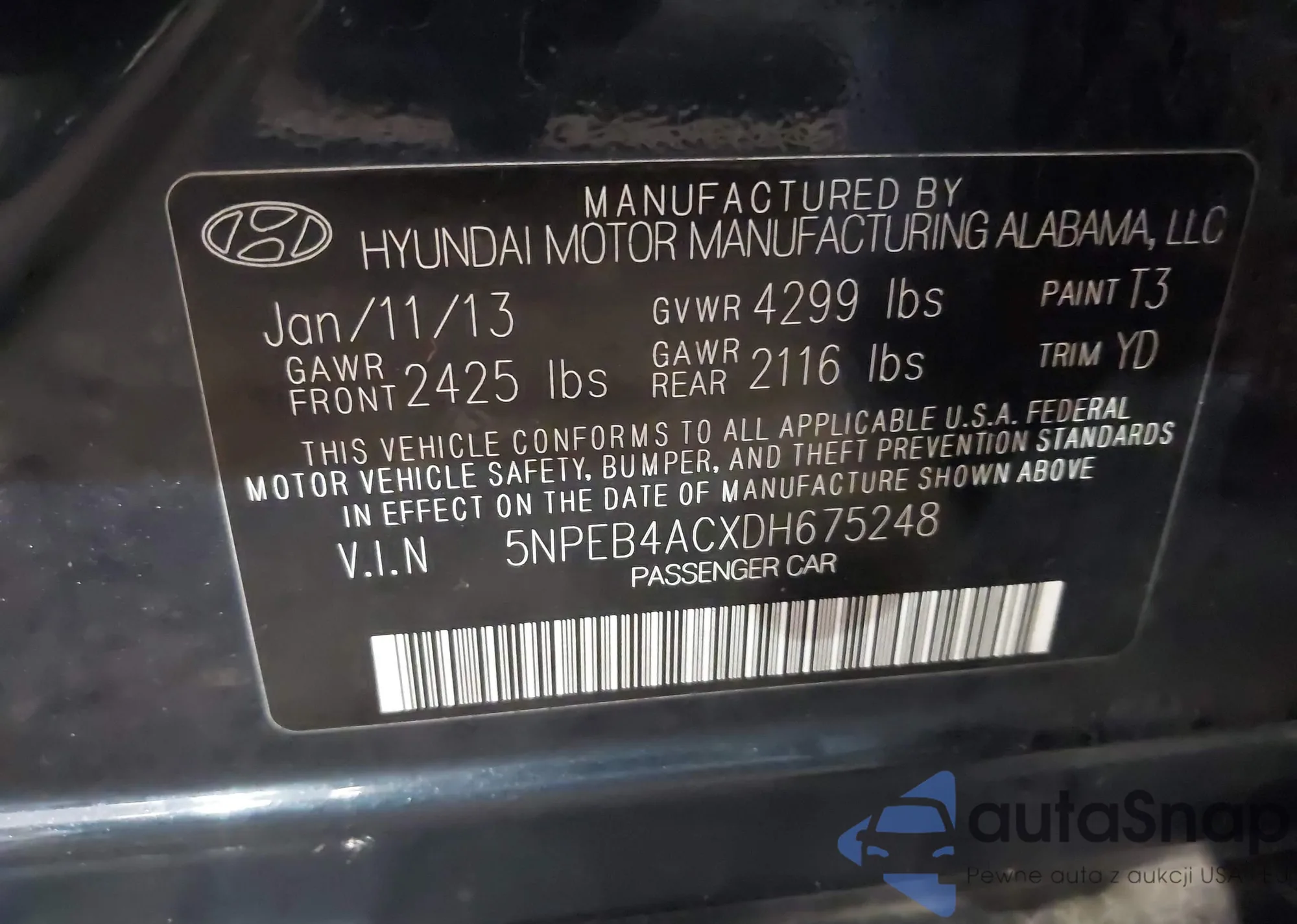 • VIN 5NPEB4ACXDH675248