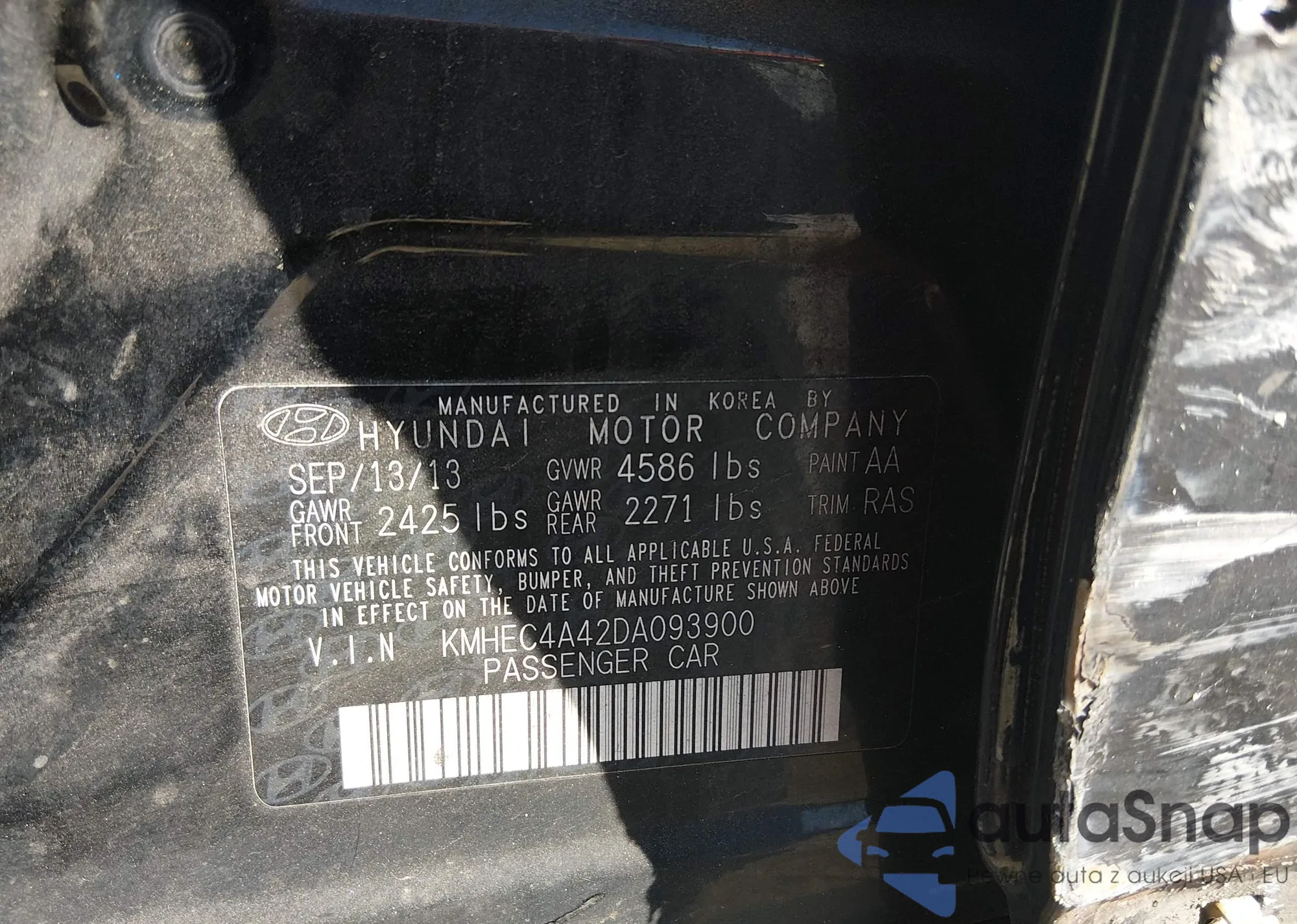 LOT: 44436719 VIN: KMHEC4A42DA093900