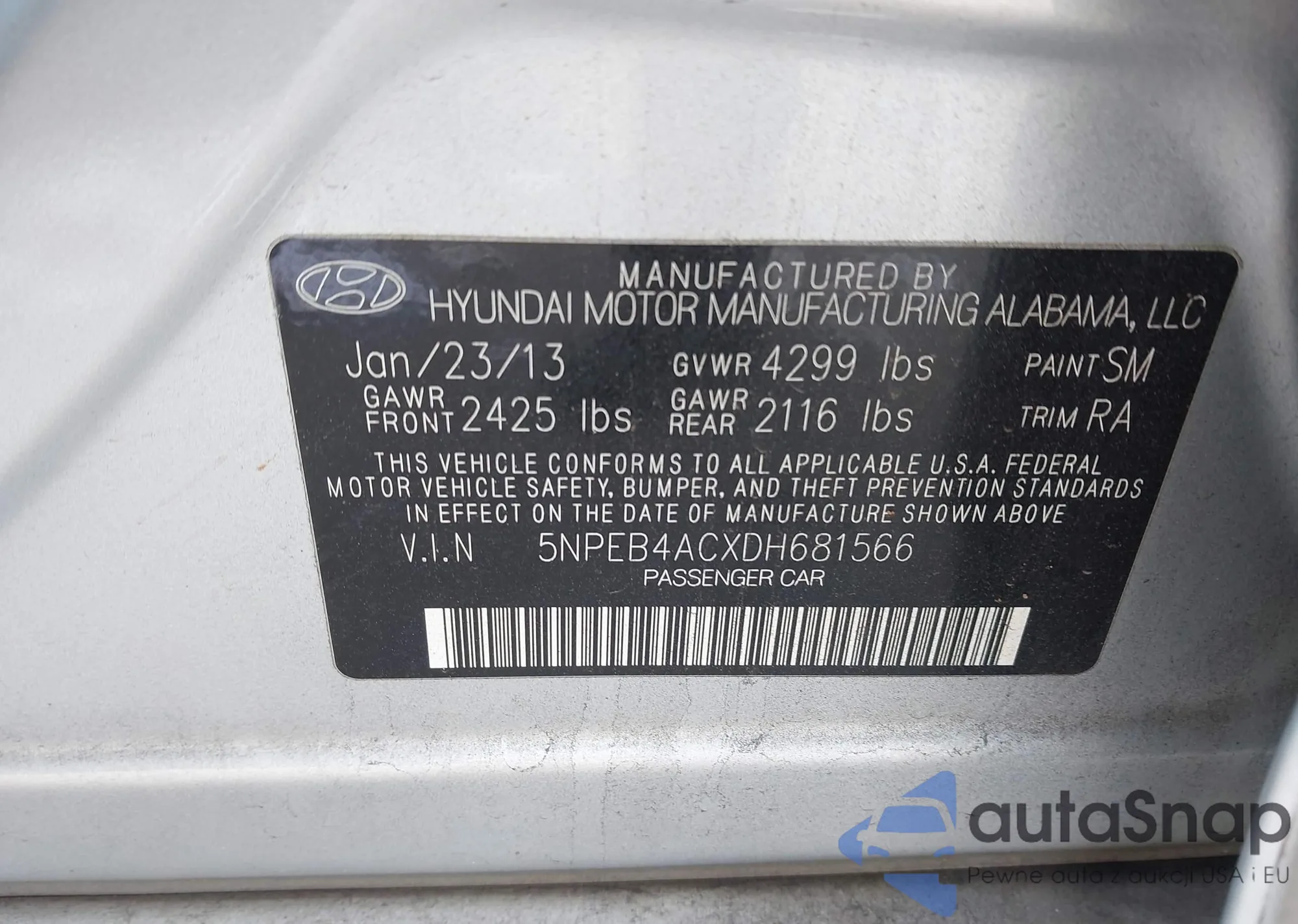 • VIN 5NPEB4ACXDH681566
