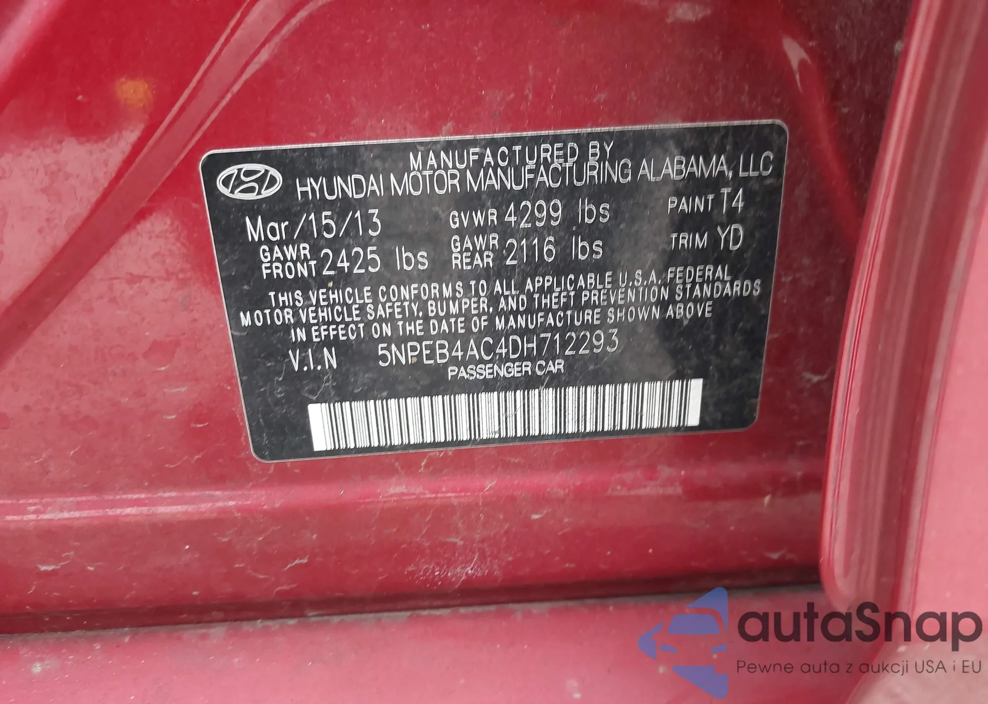 • VIN 5NPEB4AC4DH712293