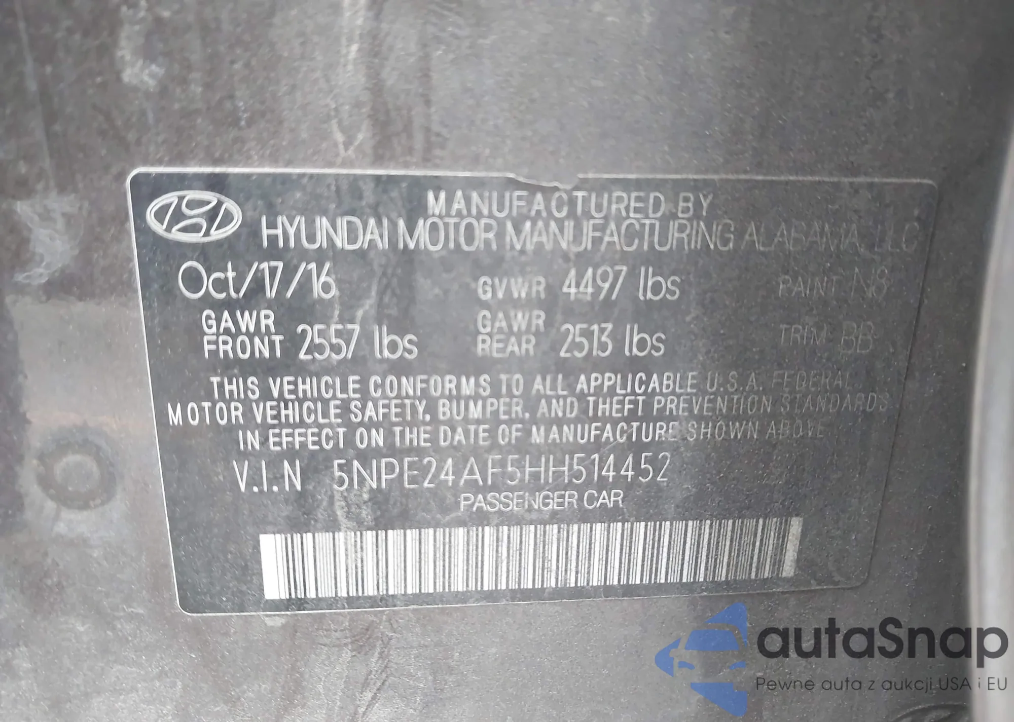 • VIN 5NPE24AF5HH514452