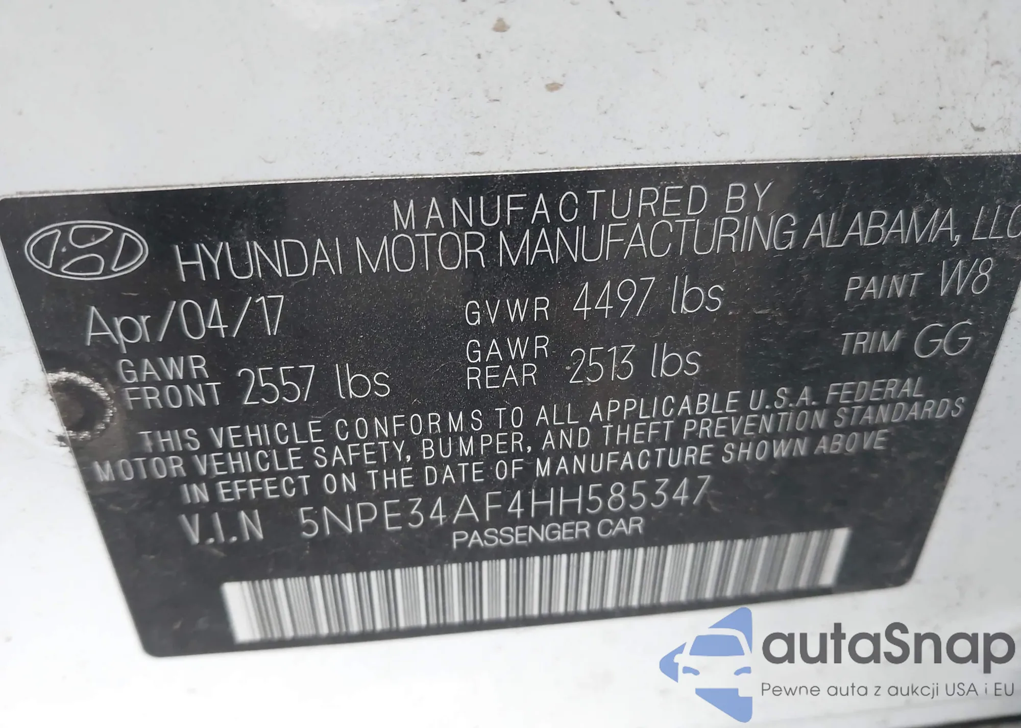 • VIN 5NPE34AF4HH585347