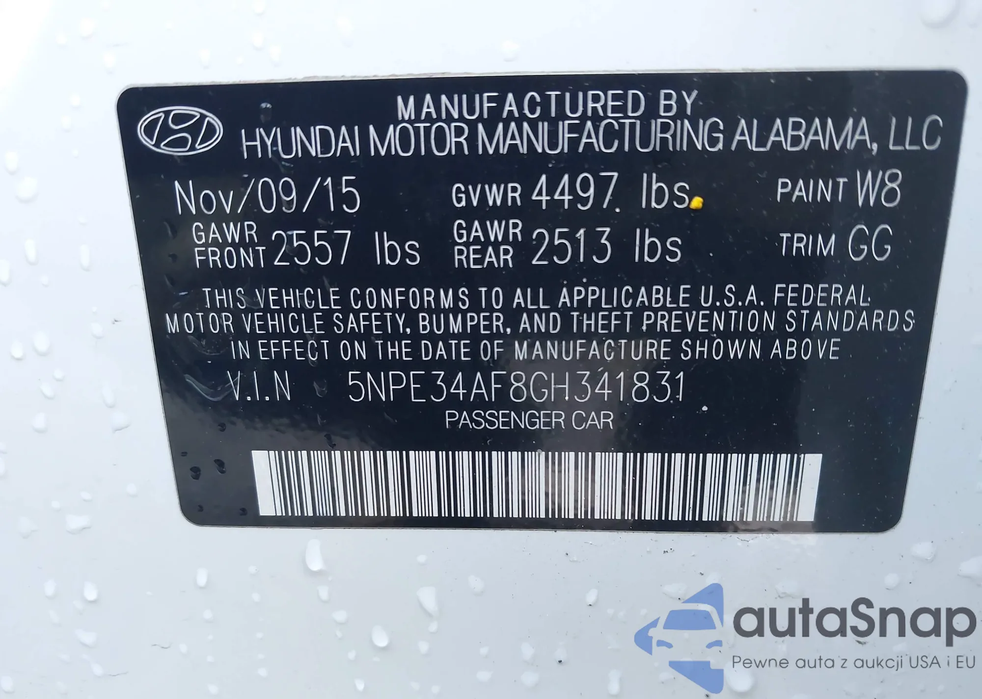 • VIN 5NPE34AF8GH341831