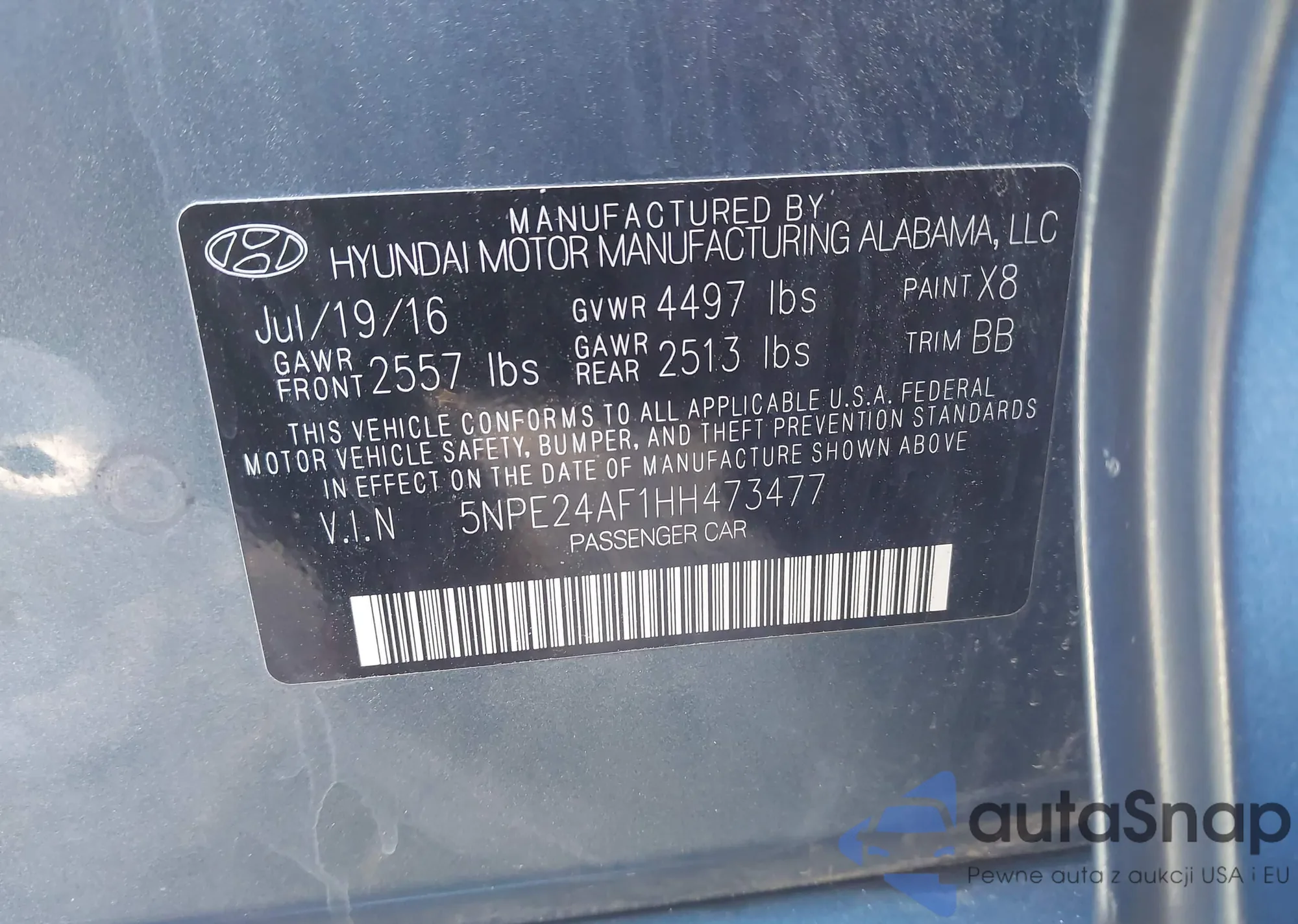 • VIN 5NPE24AF1HH473477