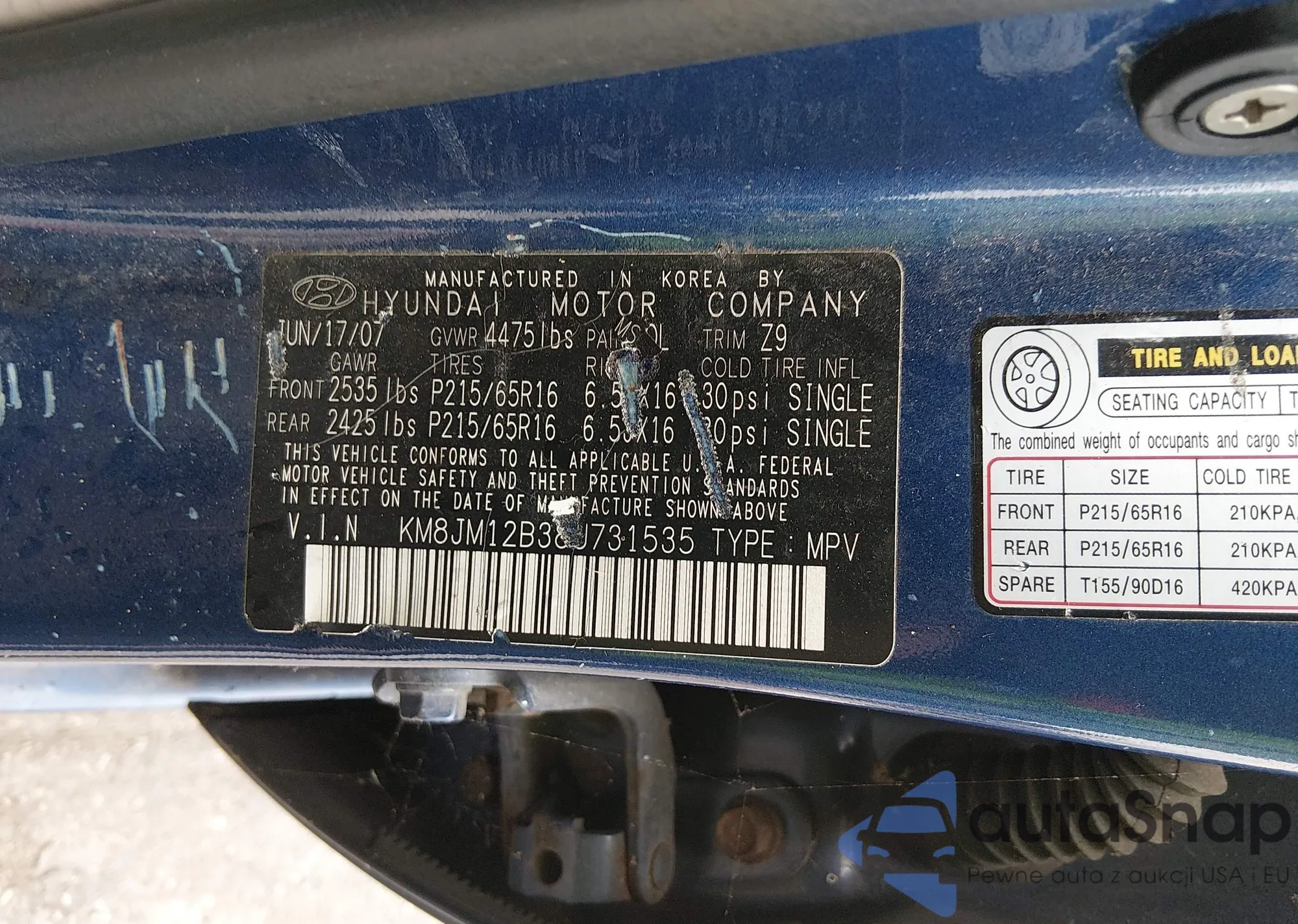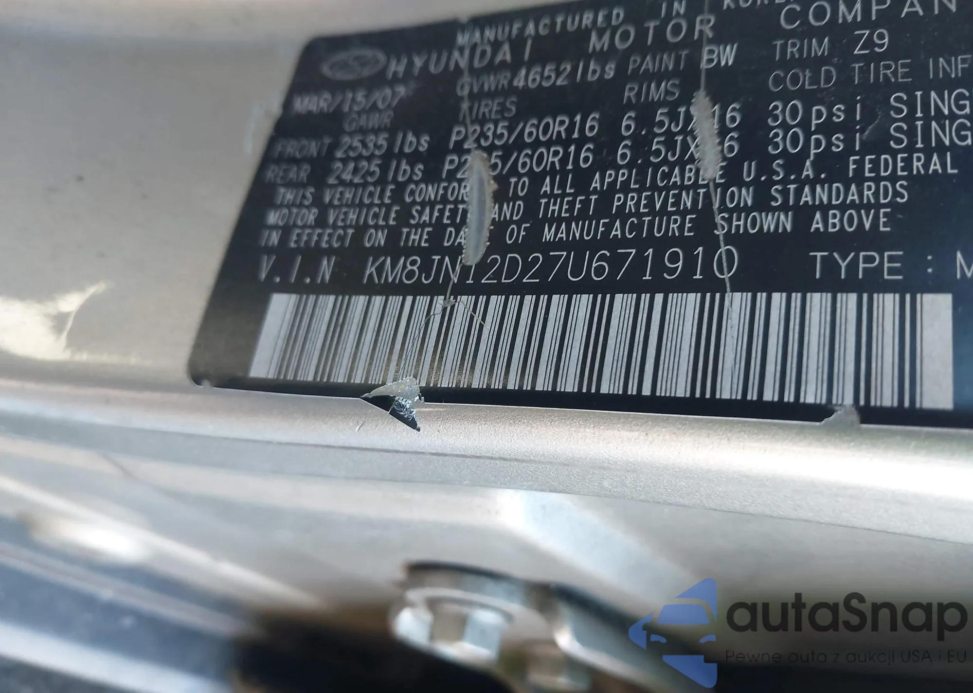 LOT: 44326892 VIN: KM8JN12D27U671910