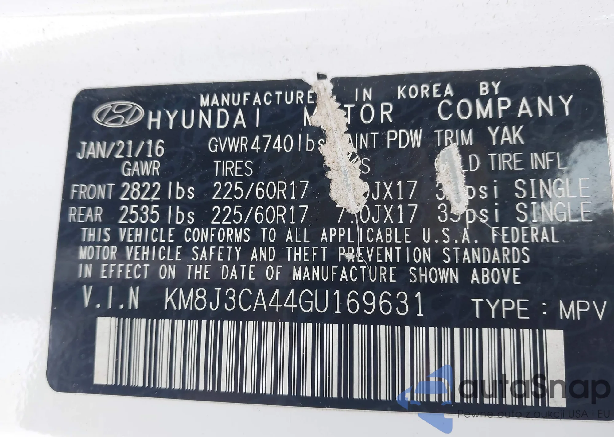 • VIN KM8J3CAL3KU992924