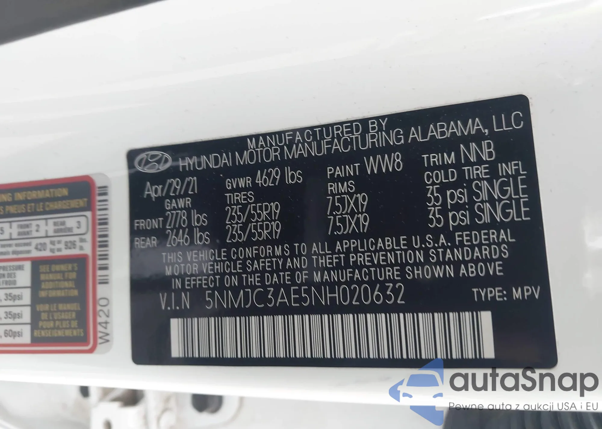 • VIN 5NMJA3AE4NH119920