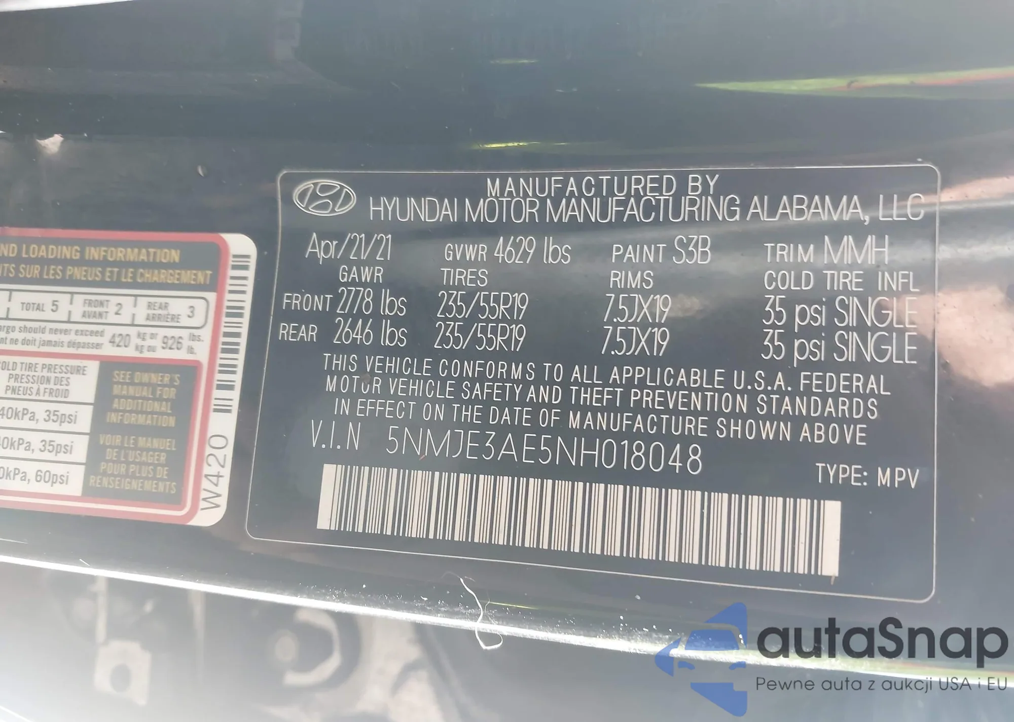 • VIN 5NMJE3AE5NH018048