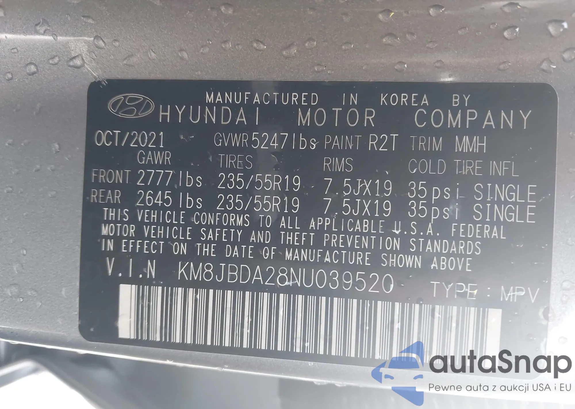 LOT: 44417685 VIN: KM8JBDA28NU039520