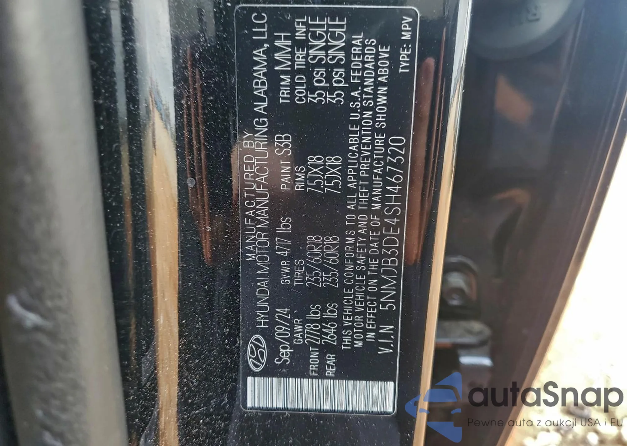 • VIN 5NMJB3DE4SH467320