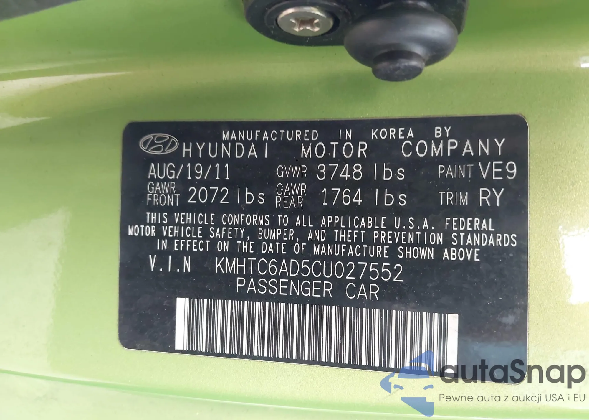 • VIN KMHTC6AD5CU027552