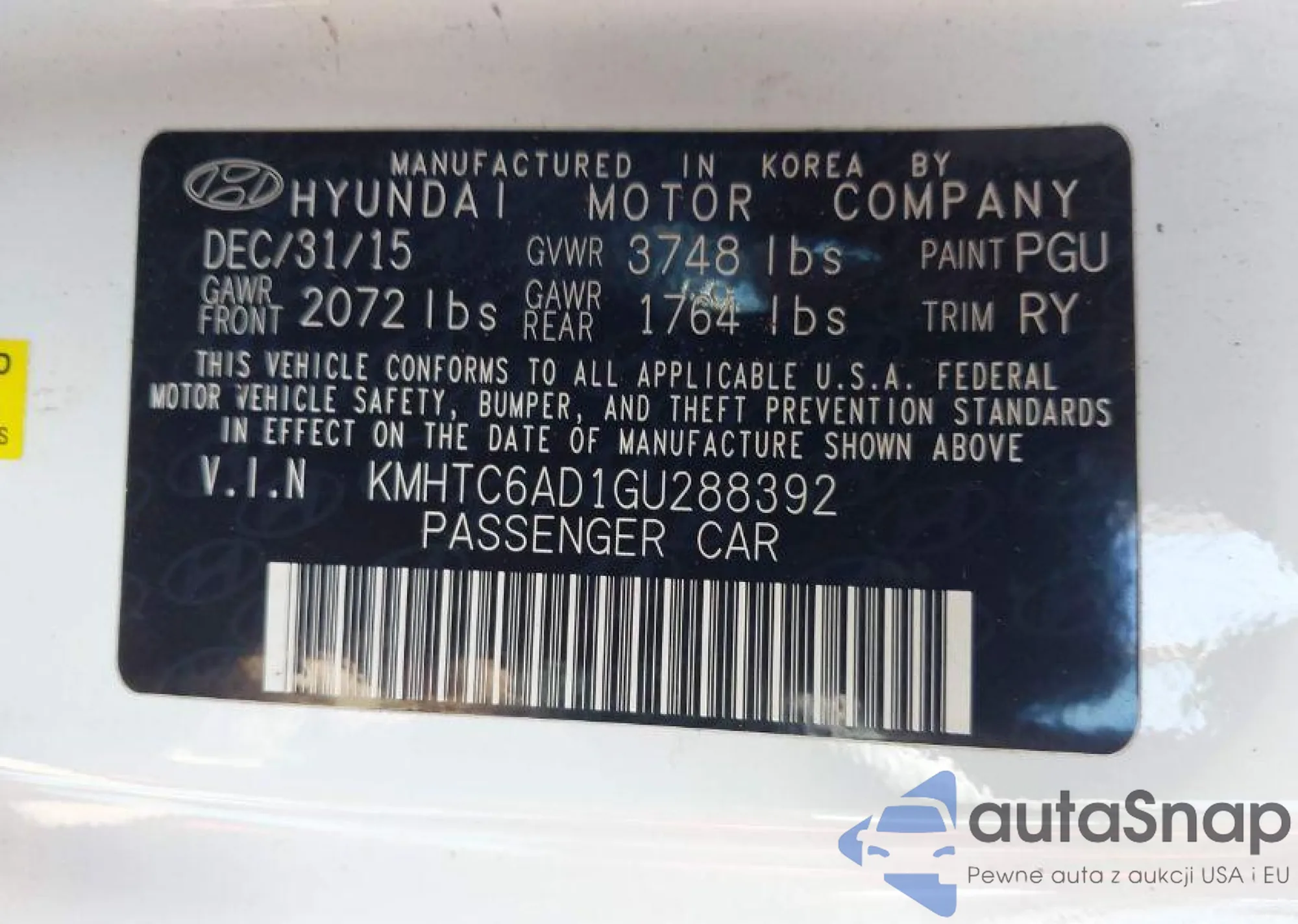 • VIN KMHTC6AD1GU288392