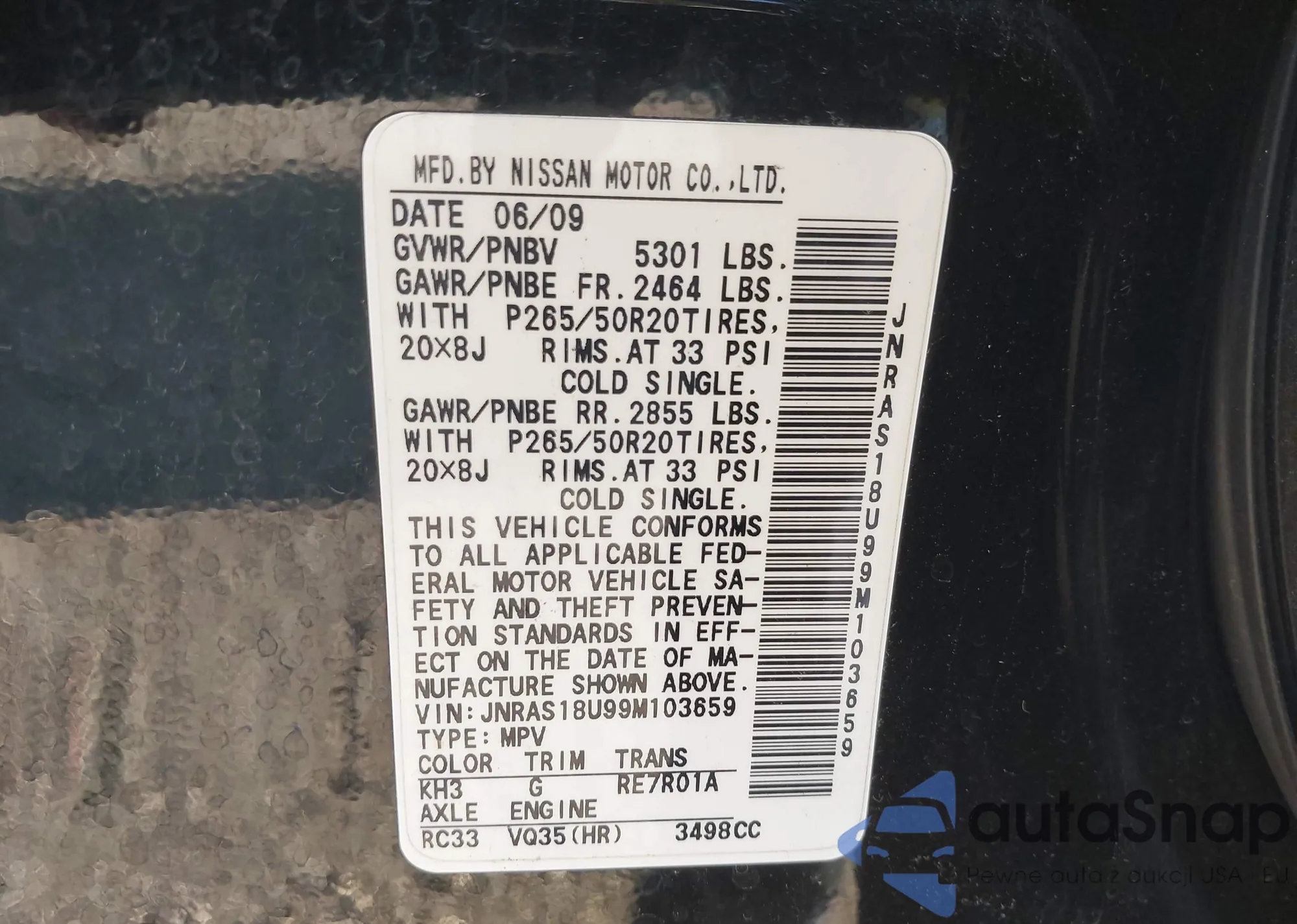 LOT: 44405137 VIN: JN8AS1MW9AM851781