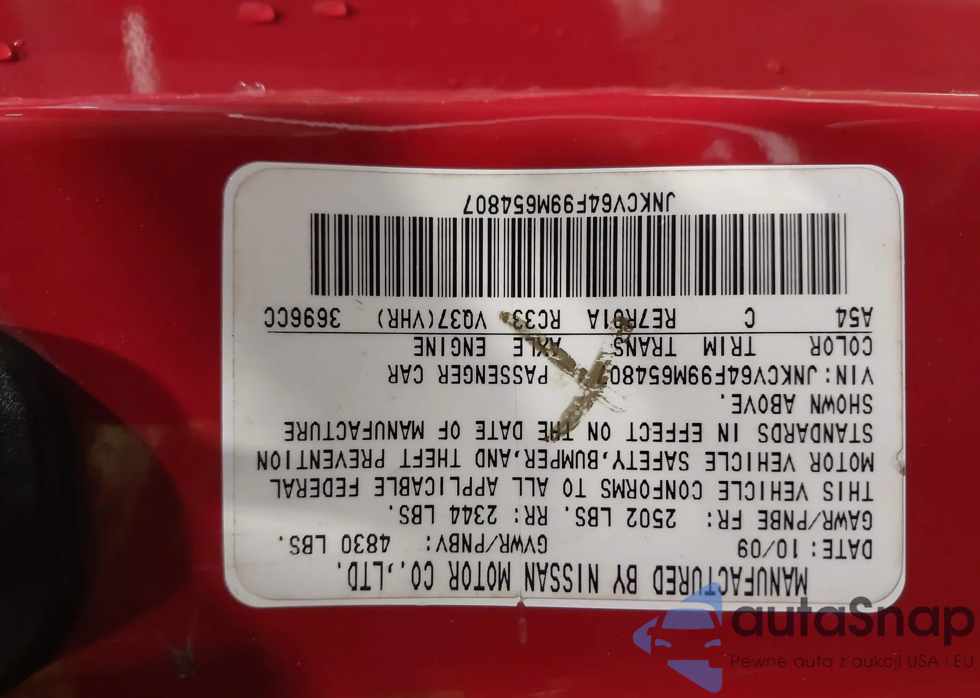 LOT: 44248372 VIN: JN1CV6AR7AM251321