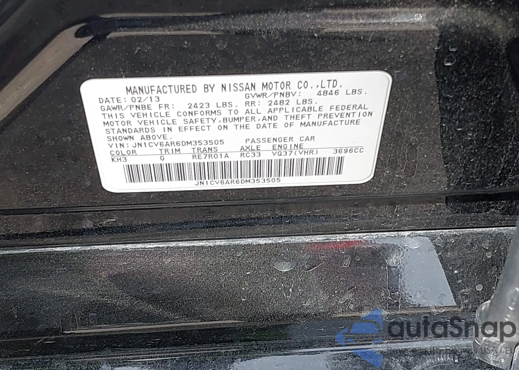 • VIN JN1CV6AR6DM353505
