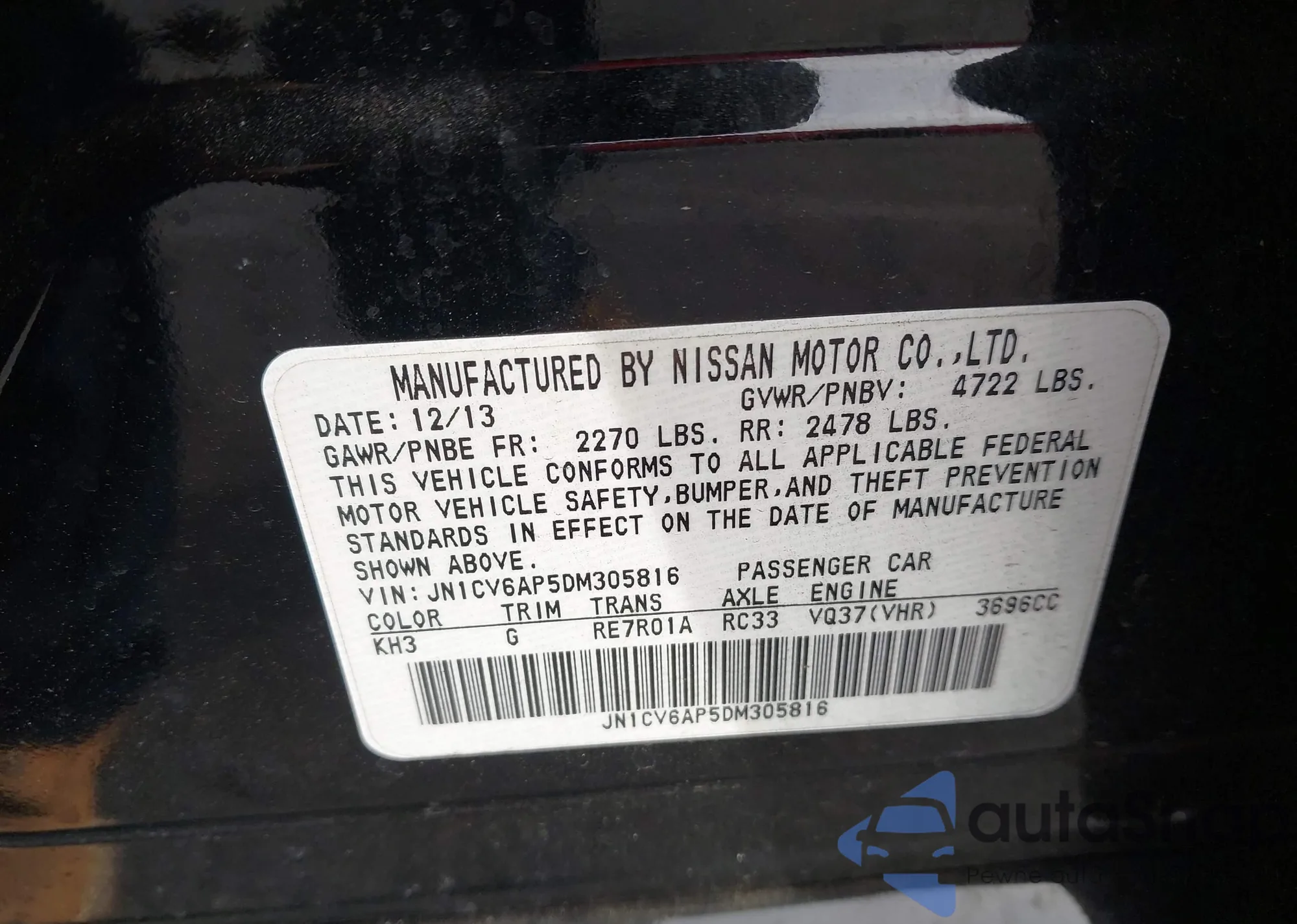 LOT: 44342322 VIN: JN1CV6AP5DM305816