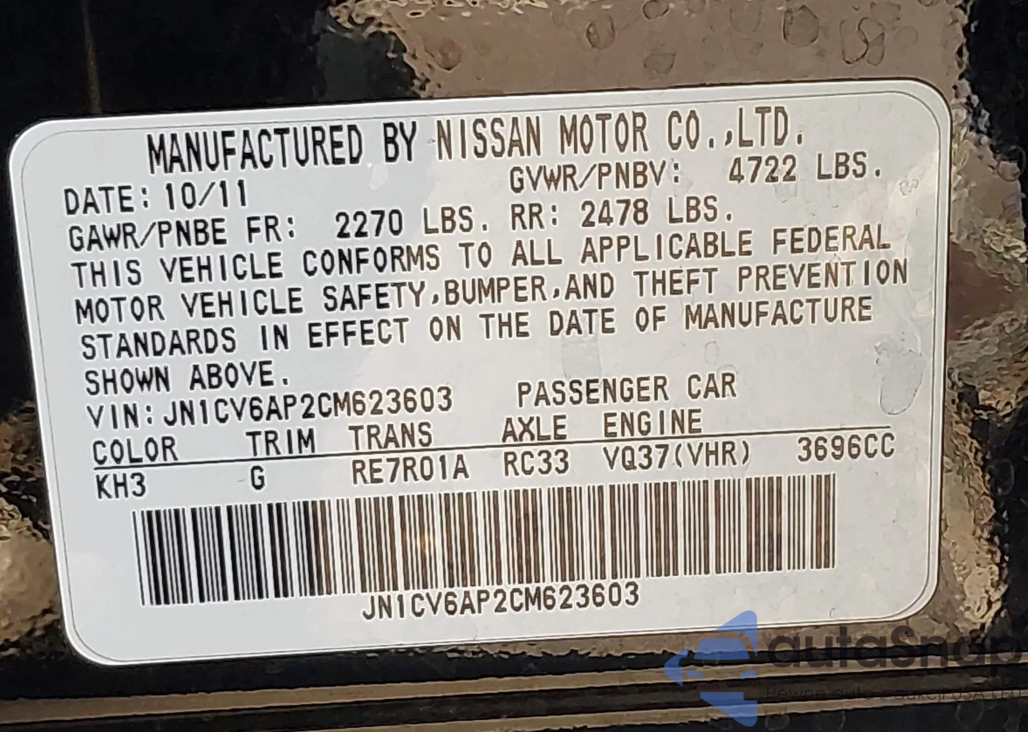 LOT: 44102800 VIN: JN1CV6AP2CM930446
