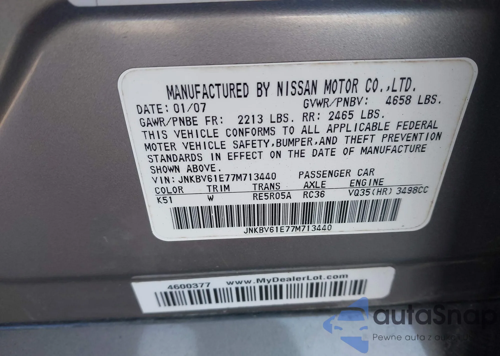 LOT: 44186158 VIN: JNKBV61E77M713440