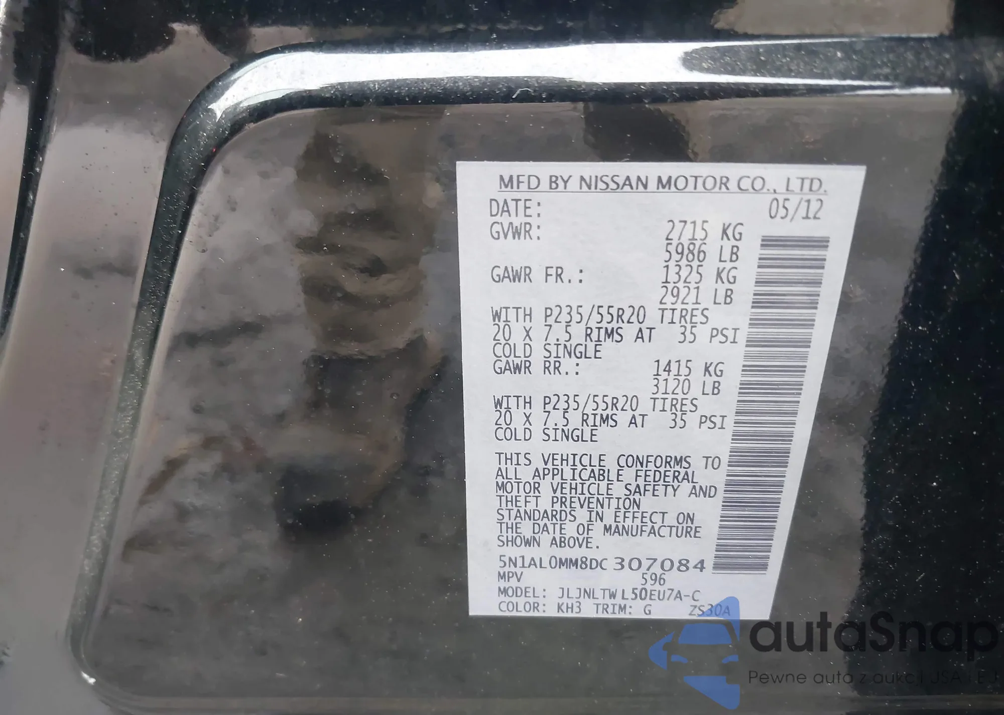 • VIN 5N1AL0MN7DC306985