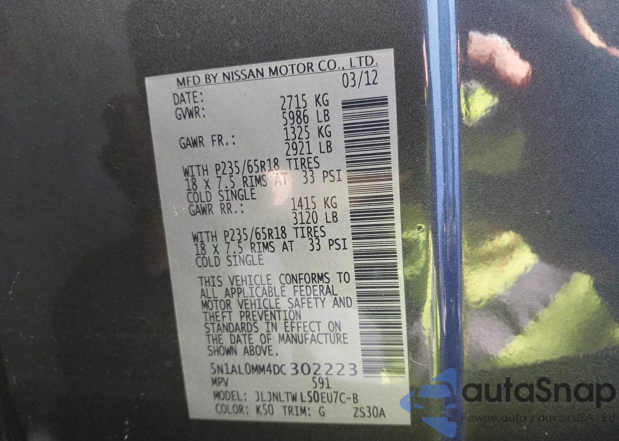 • VIN 5N1AL0MN2DC303346