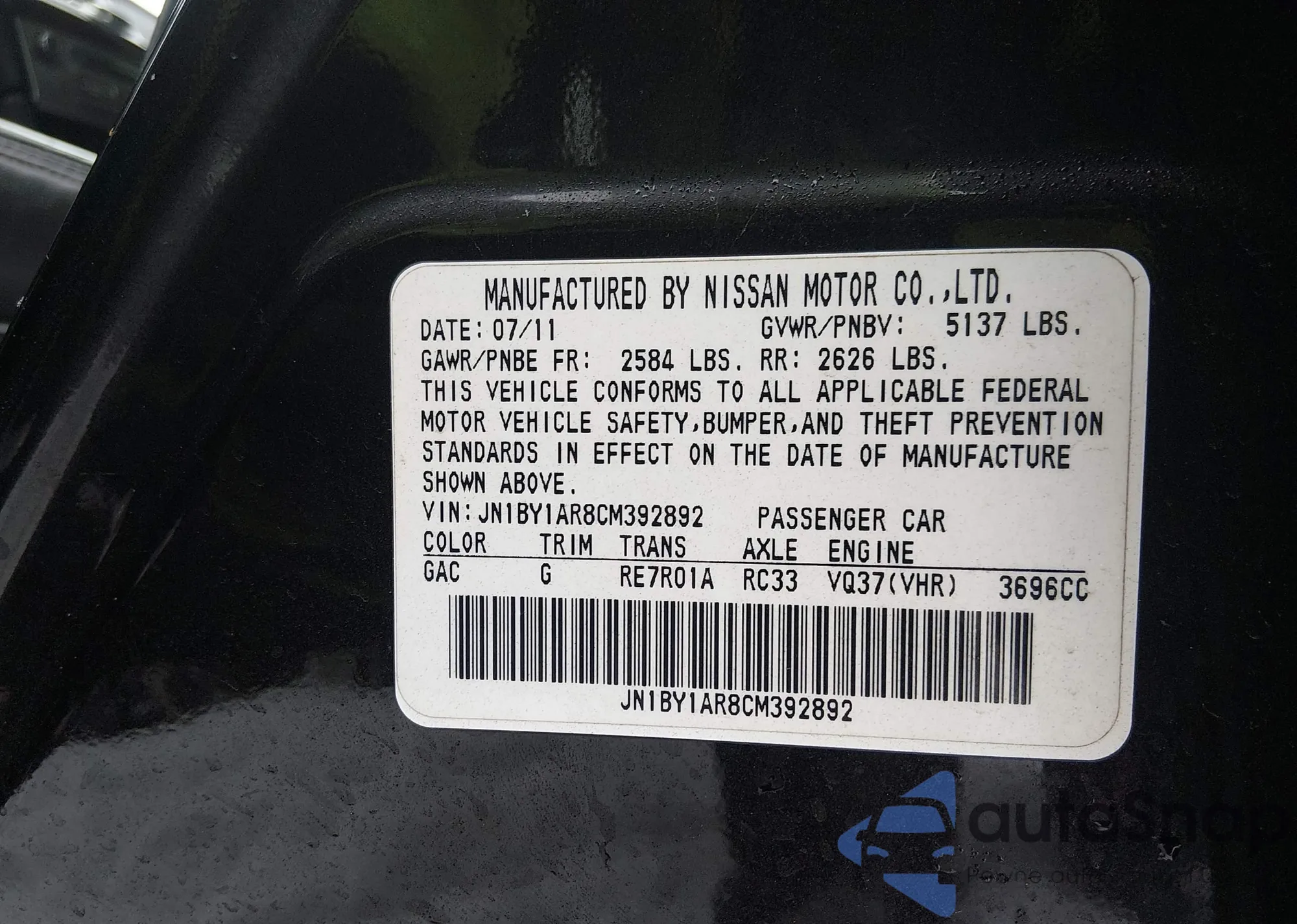 LOT: 43907977 VIN: JN1BY1AP5BM321937