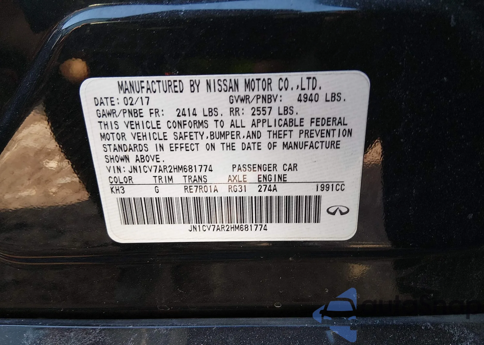 • VIN JN1CV7AR2HM681774