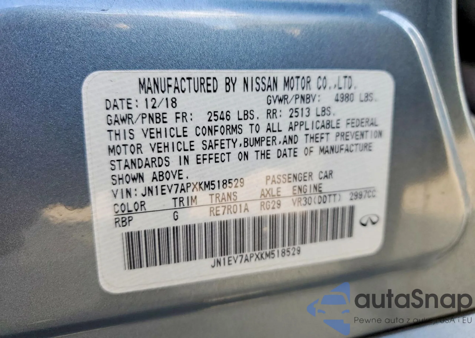 LOT: 43899300 VIN: JN1EV7AP2JM358029