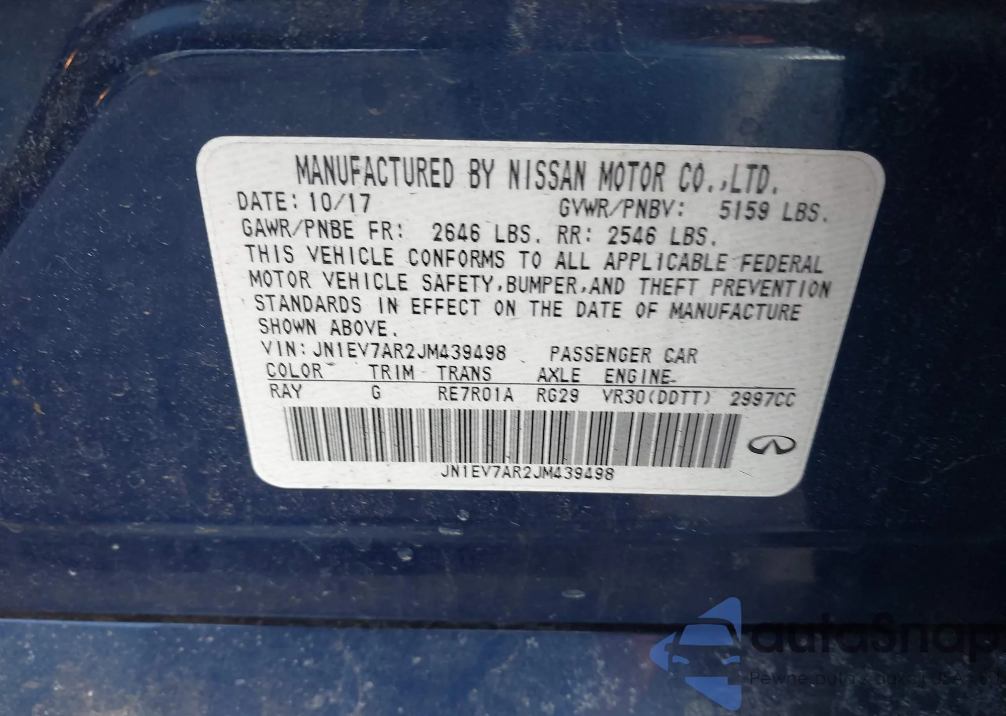 LOT: 44425389 VIN: JN1EV7AR2JM439498