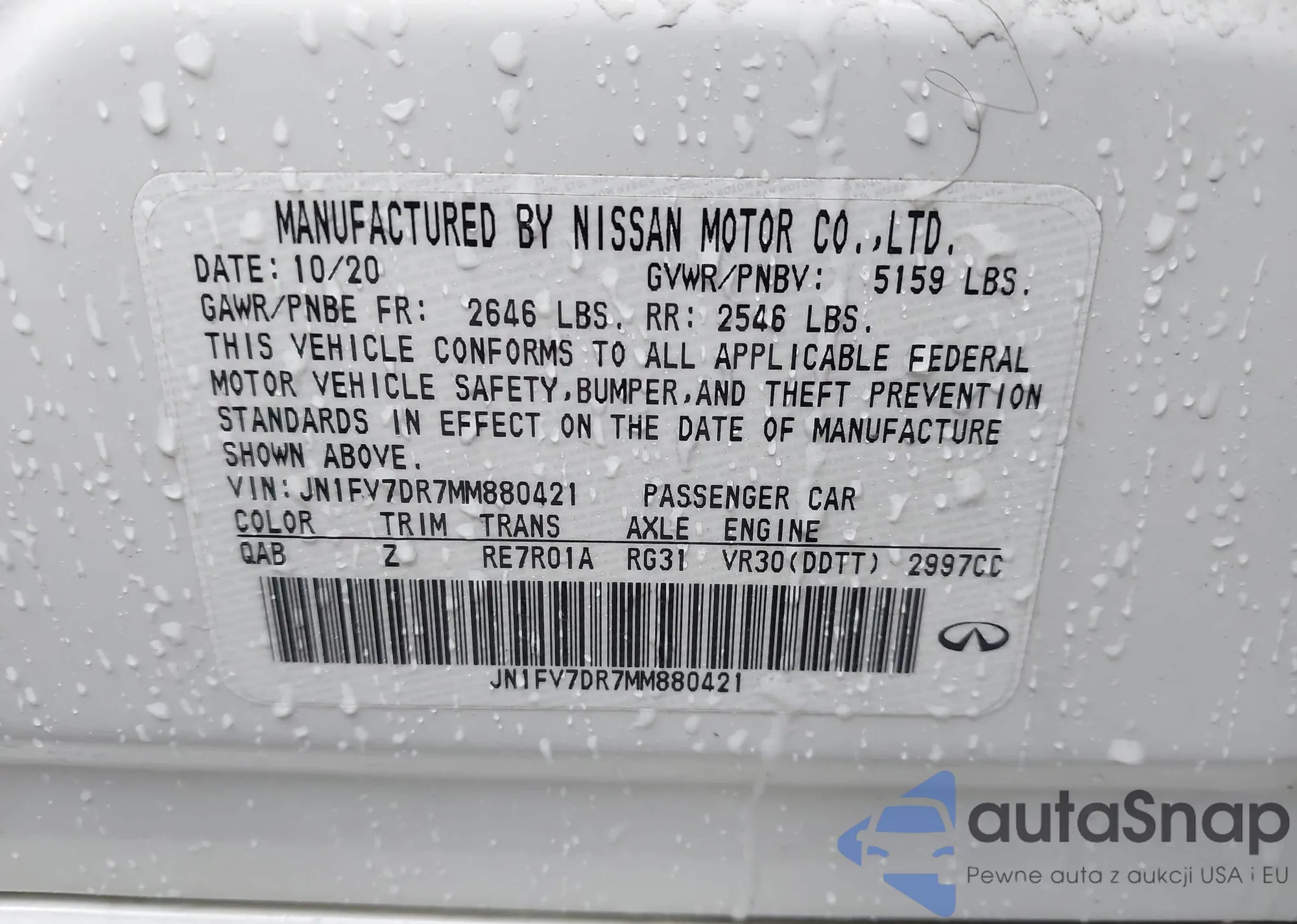 LOT: 44406234 VIN: JN1EV7BR3MM752899